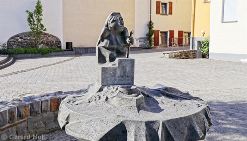 Bild in Lightbox öffnen (open image in lightbox). Der Brunnen erinnert an die Razejungen, die mit einem Tragegestell Mist in die Weinberge trugen.