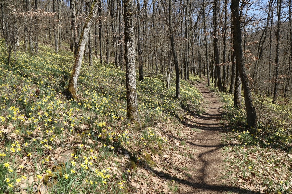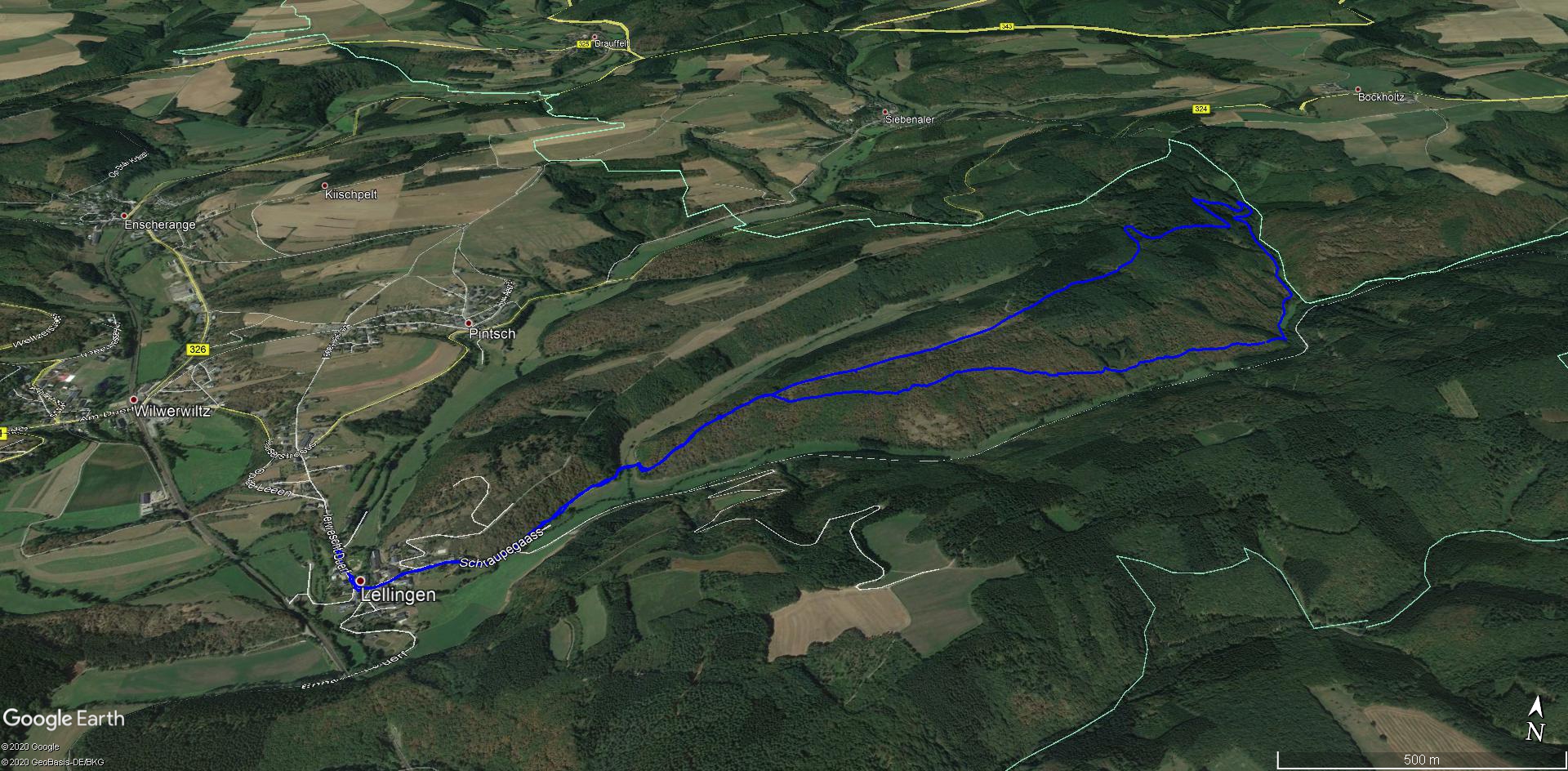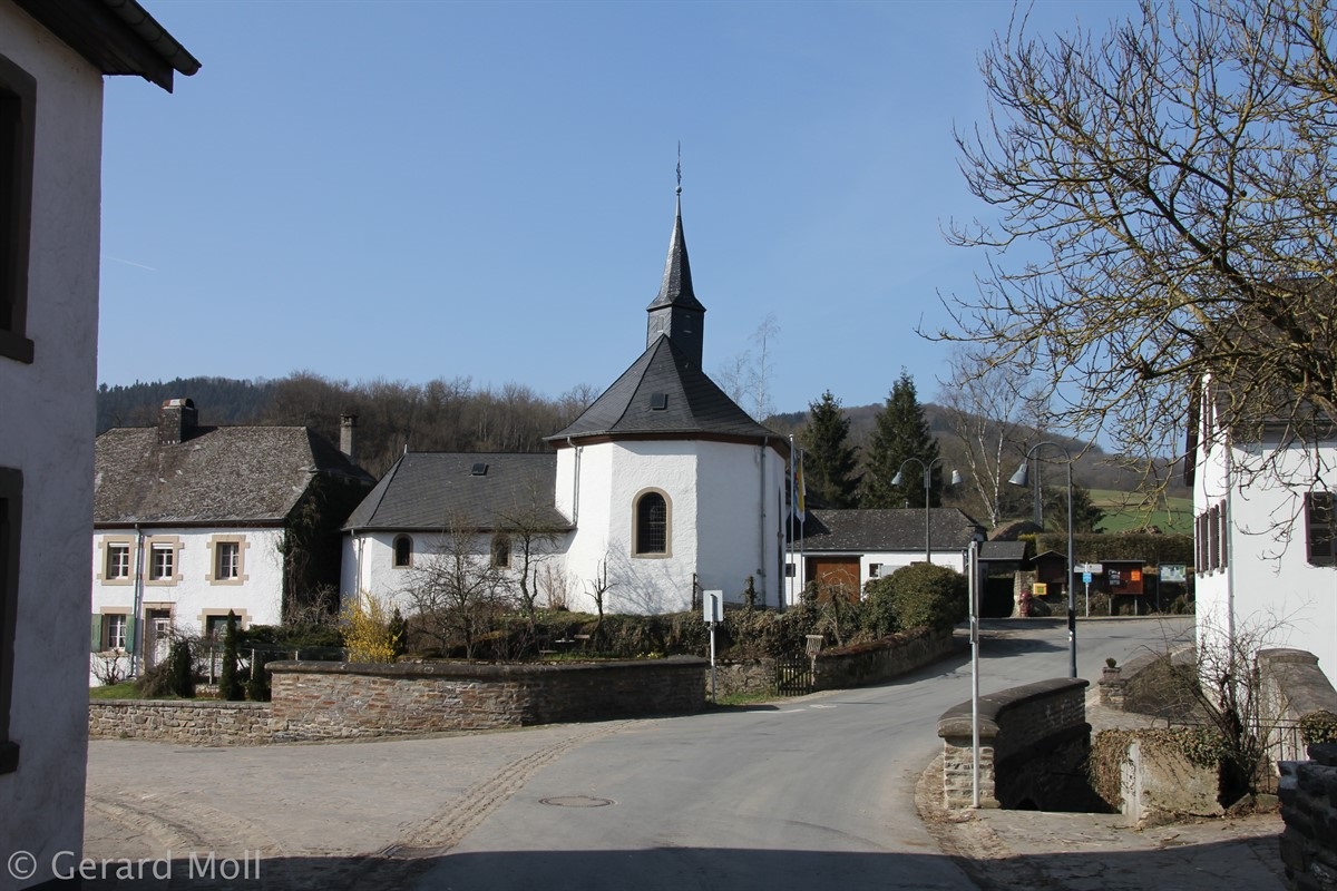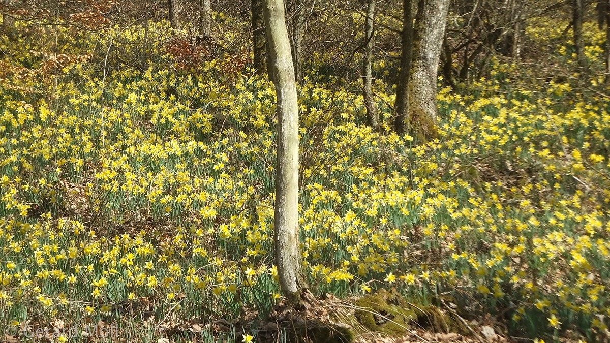 Vom Parkplatz am Ortseingang von Lellingen durchqueren wir den kleinen Ort und wandern auf die Anhöhen oberhalb des Lëllger Baches. Im Frühling blühen hier Millionen wilde Narzissen. Auf der anderen Seite des Höhenzuges kehren wir nach Lellingen zurück.