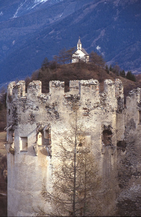 Bild in Lightbox öffnen (open image in lightbox). Die Burg Lichtenberg war bis 1513 im Besitz der Grafen von Tirol. Seit dem 19. Jahrhundert ist die Burg zur Ruine verfallen. Wertvolle Fresken von 1400 wurden abgelöst und sind heute im Ferdinandeum in Innsbruck.