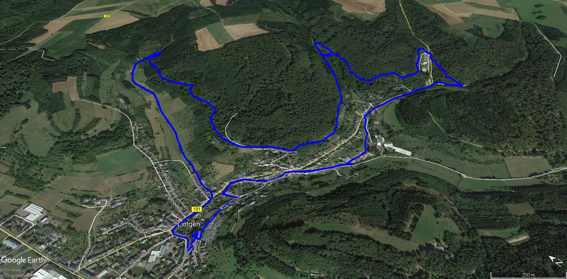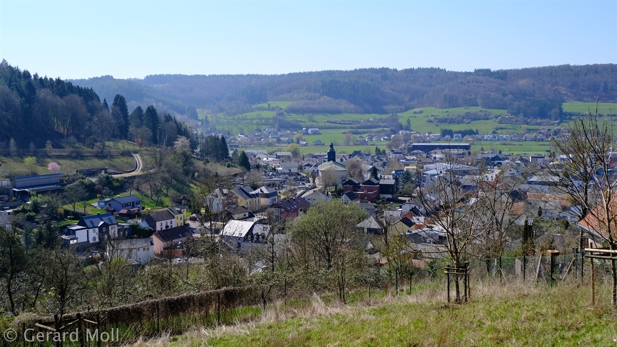 Von der Kirche in Lintgen folgen wir der Markierung Pankenkreuz, das auch Teil des Wappens der Gemeinde Lintgen ist, und biegen in die rue des Champs ab. Durch das schöne Tal steigen wir hinauf bis in den Wald, wo wir scharf nach rechts abbiegen. Bald treffen wir auf die Markierung der Rundwanderung von Lintgen, der wir bis zu einem Weiher folgen. Beim Chalet A Mouschelt überqueren wir die Strasse. Durch den Ort kehren wir zur Kirche zurück.