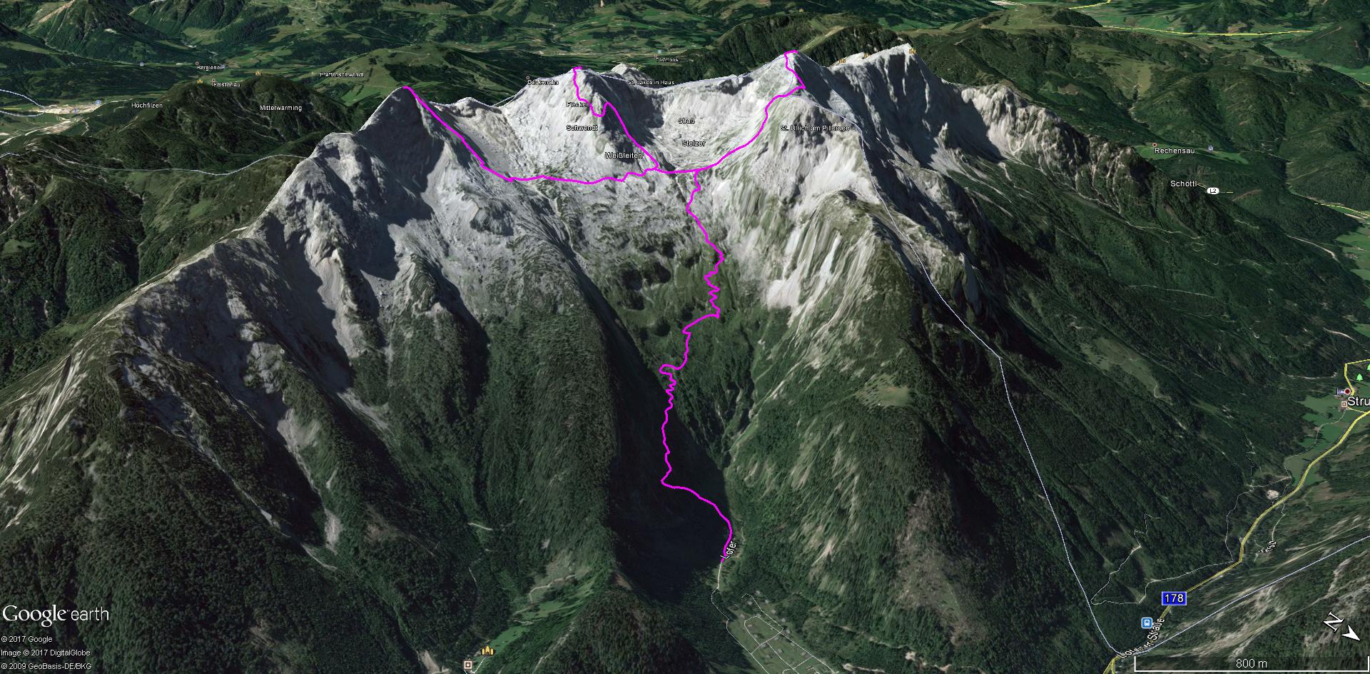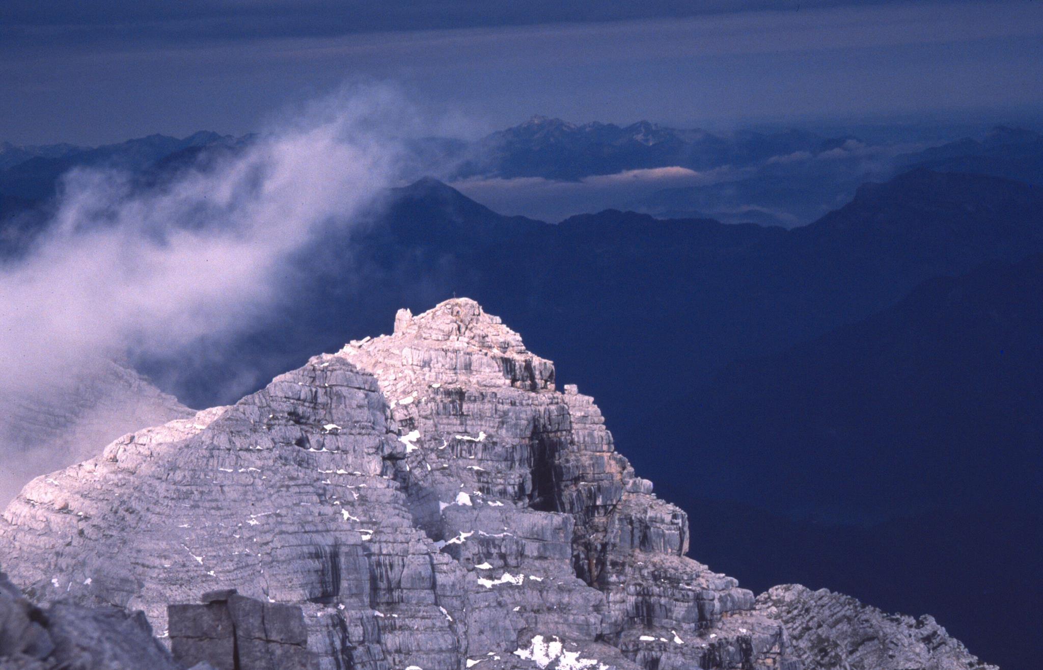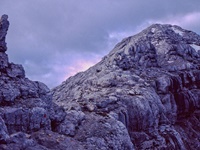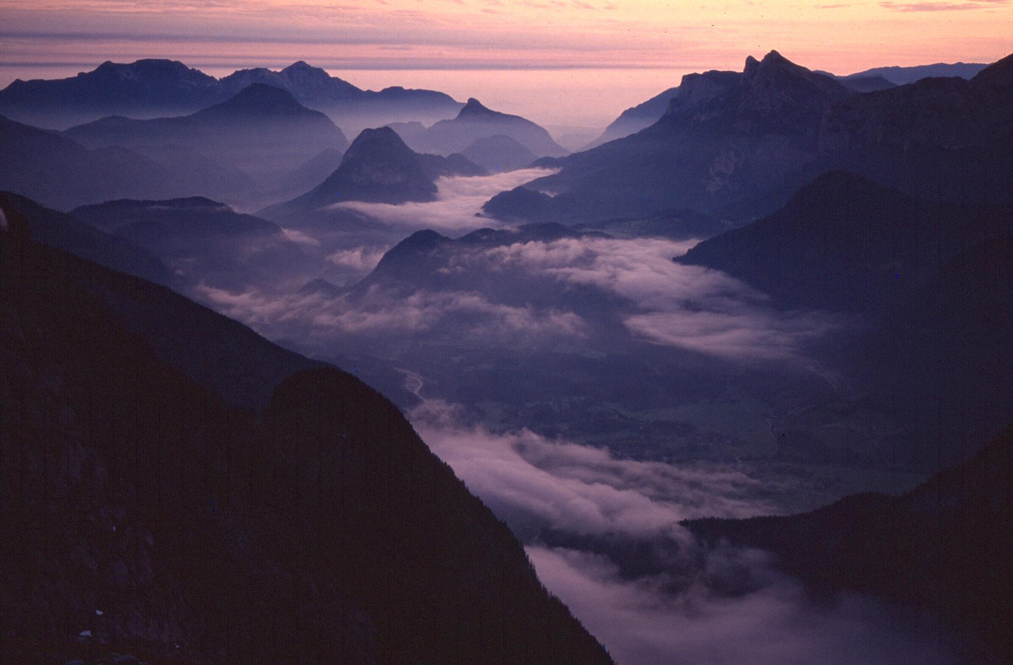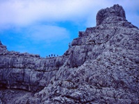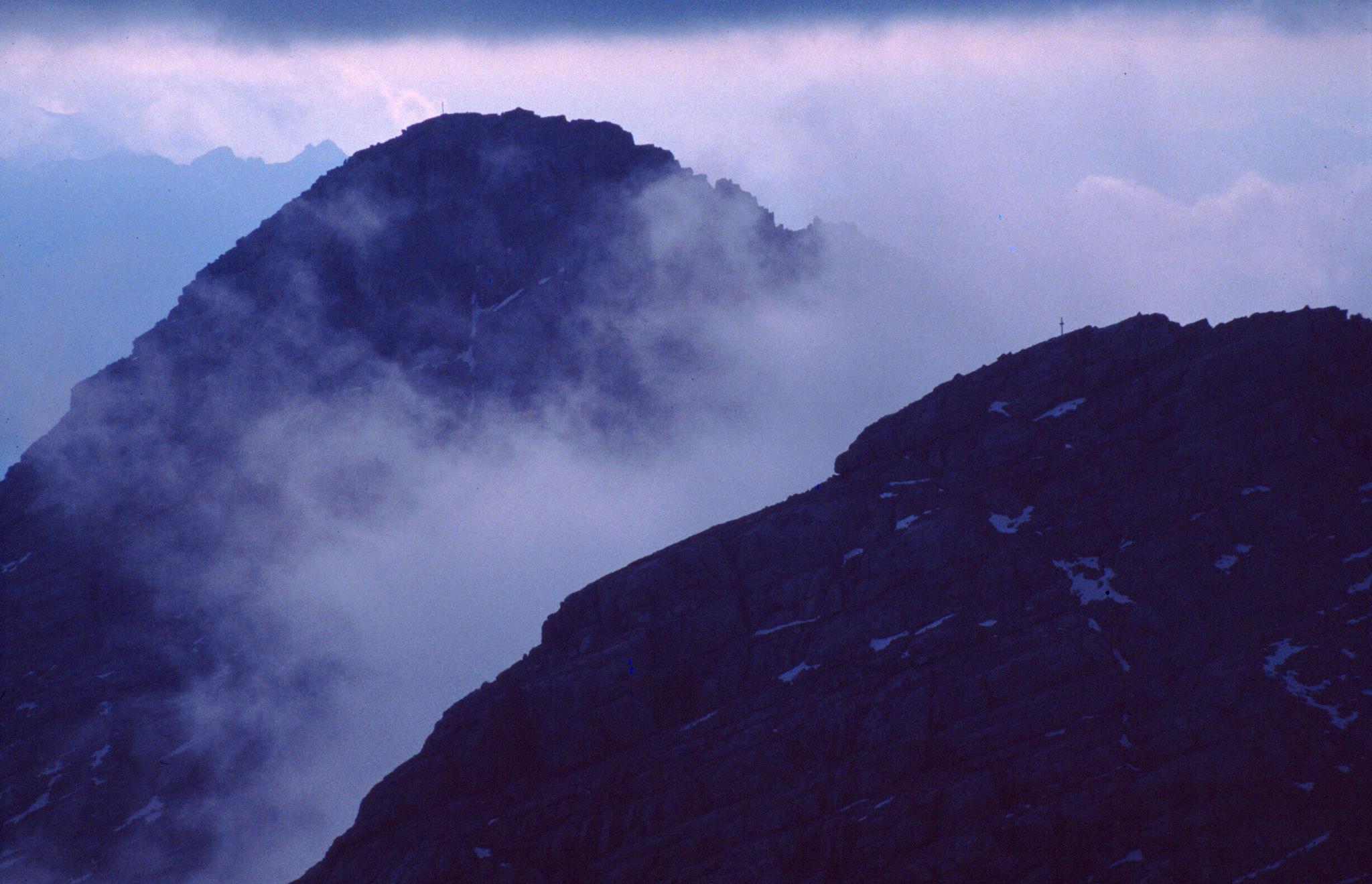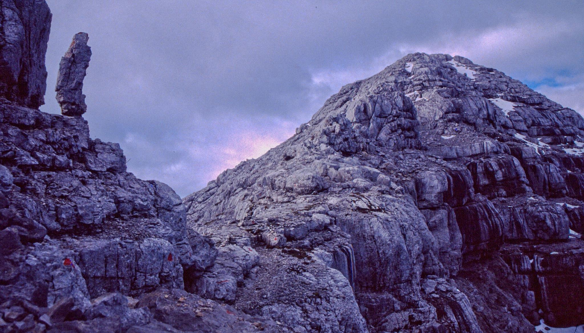 Hier alte Bilder einer Zwei-Tagestour in die Loferer Steinberge. Vom Loferer Hochtal (781 m) ging es auf steilem Weg zur Schmidt-Zabierow-Hütte (1966 m). Am selben Tag wurde noch das Grosse Reifhorn (2488 m) über Bänder bestiegen. Am nächsten Tag zuerst erfolgte zuerst der Aufstieg auf das Mitterhorn (2506 m), dann kam der Abstieg zur Hütte und zum Schluss wurde noch der höchste Gipfel, das Grossen Ochsenhorn (2511 m) bestiegen. Anschließend ging es wieder hinunter ins Tal.