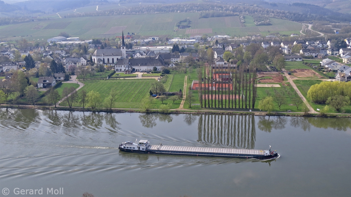 Das Moseltal ändert bei dem am rechten Moselufer liegenden Doppelort seine Erscheinungsbild, von einer breiten Talebene zum mäandrierenden Flußtal.