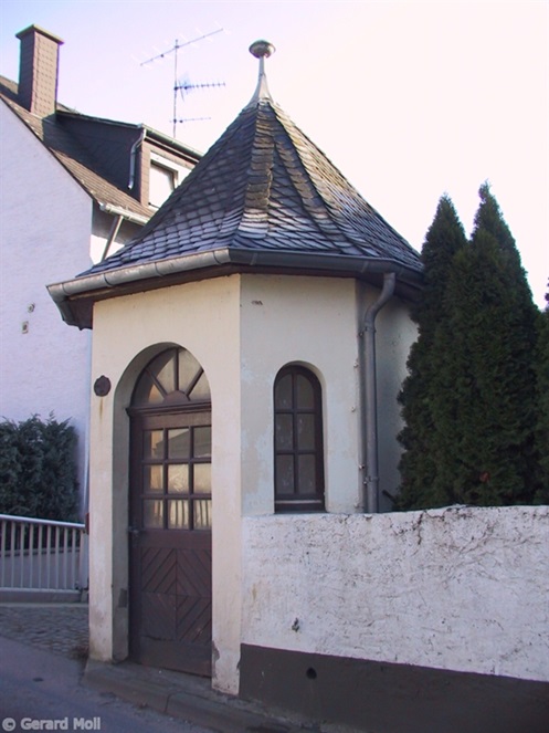 Bild in Lightbox öffnen (open image in lightbox). Das Brückenzollhäuschen in Longuich.