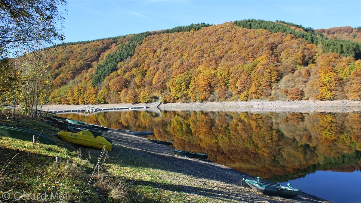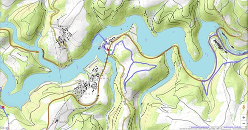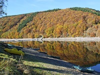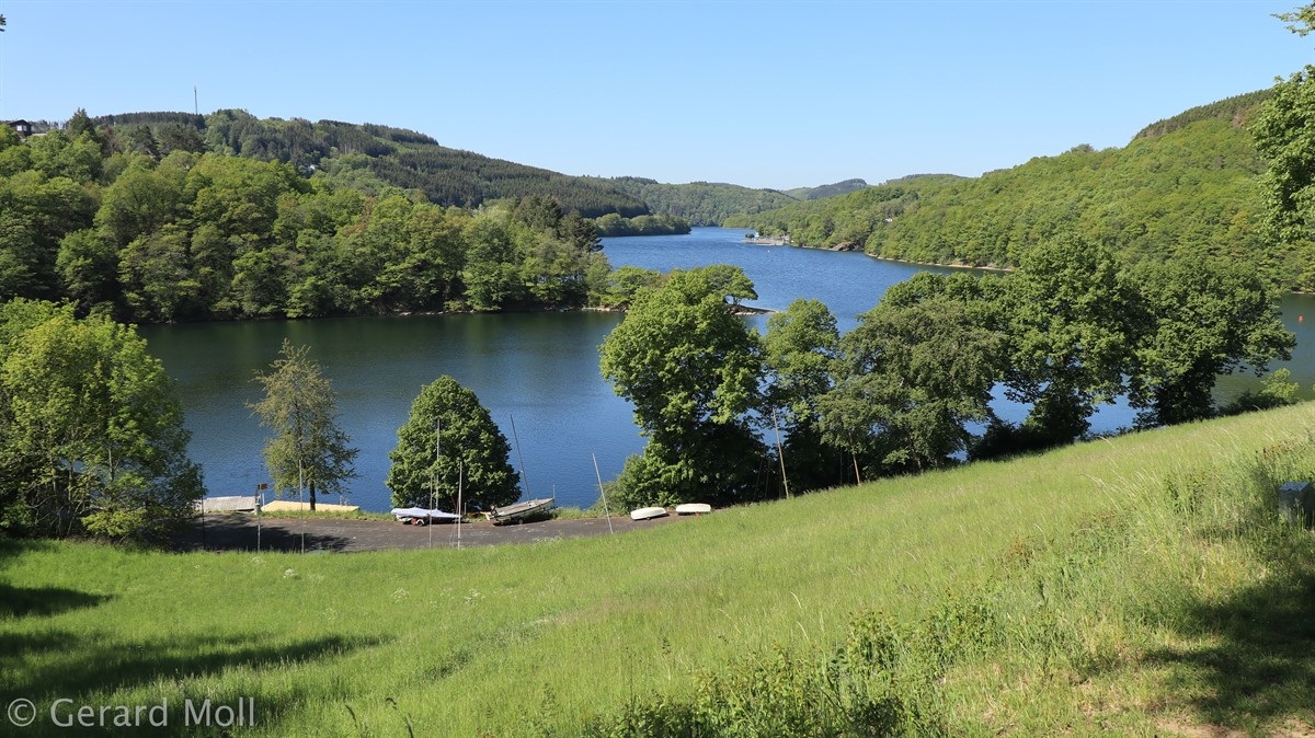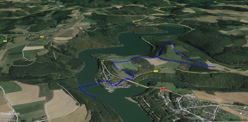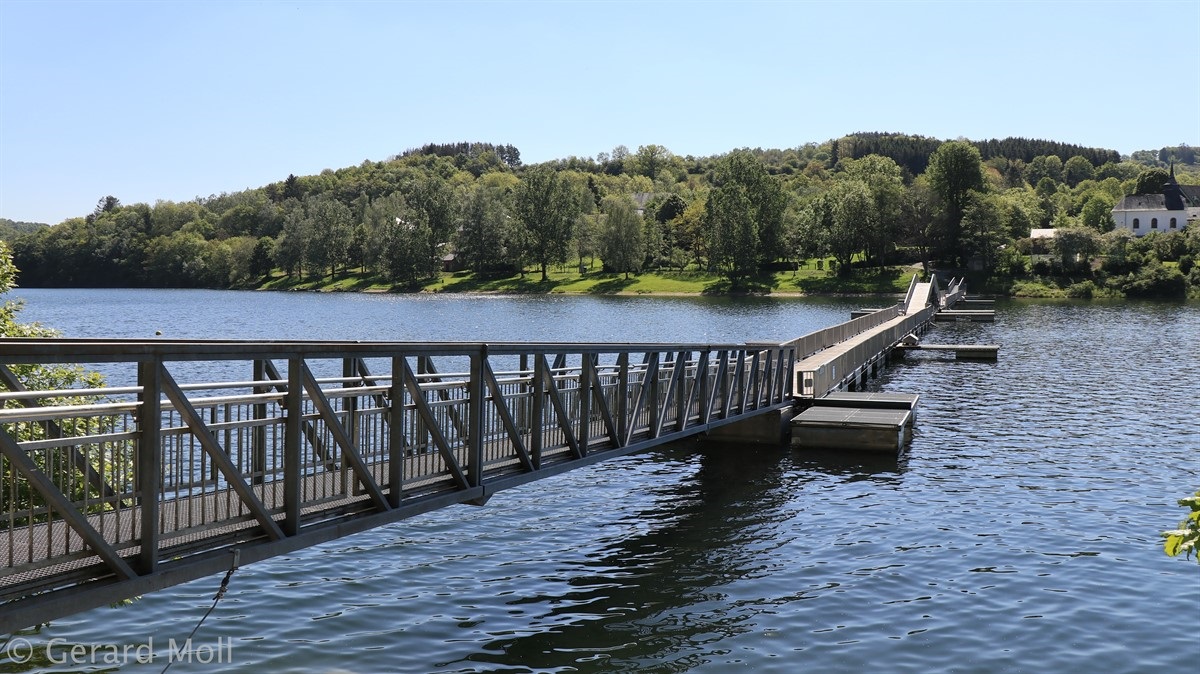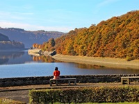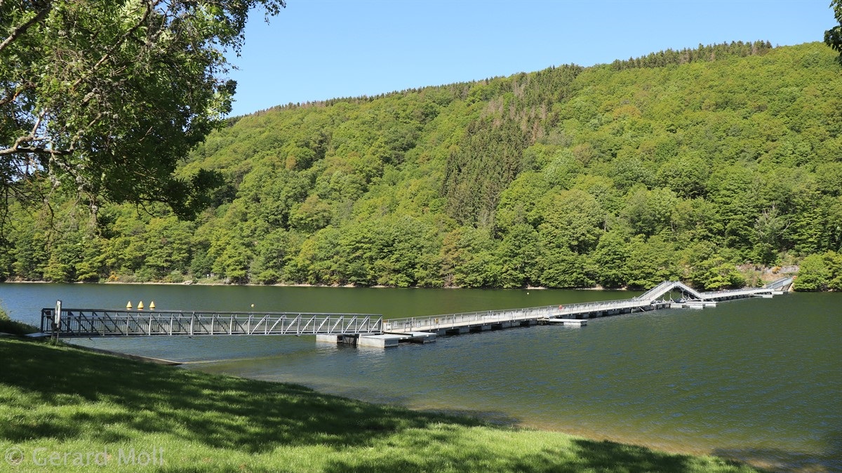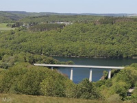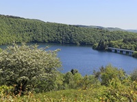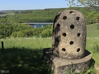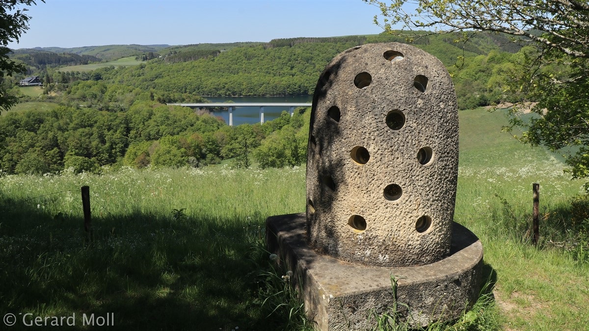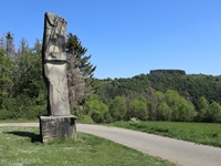 Nachdem wir in Lultzhausen zuerst die Füssgängerbrücke besichtigt haben, wandern wir vom Parkplatz am Ortseingang auf dem 1999 angelegten Skulpturenwanderweg an sehenswerten Skulpturen vorbei und geniessen dabei tolle Ausblicke auf den Stausee.