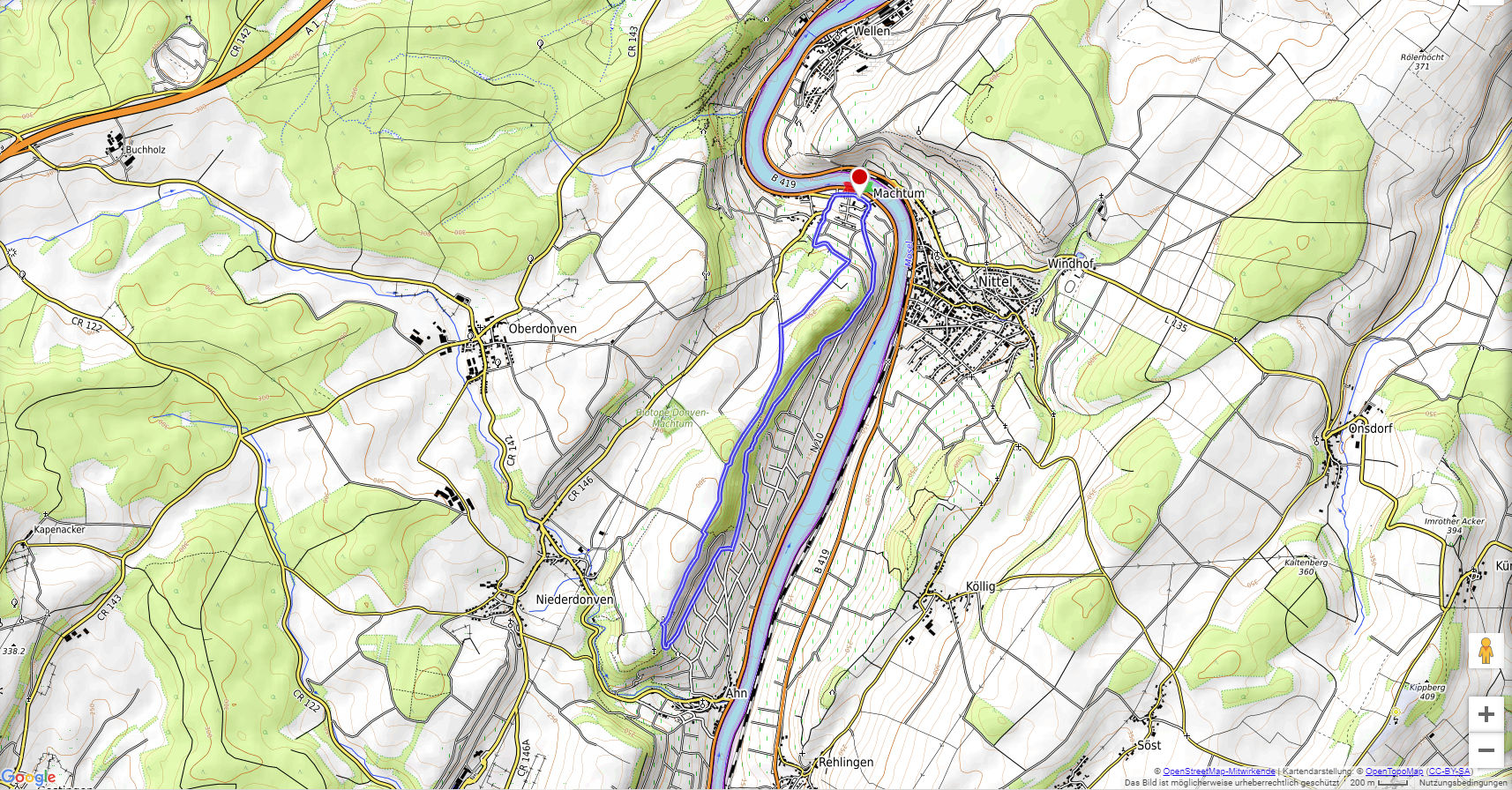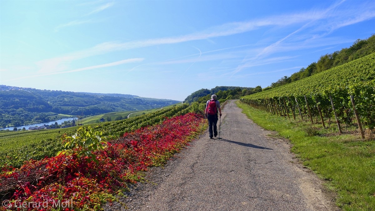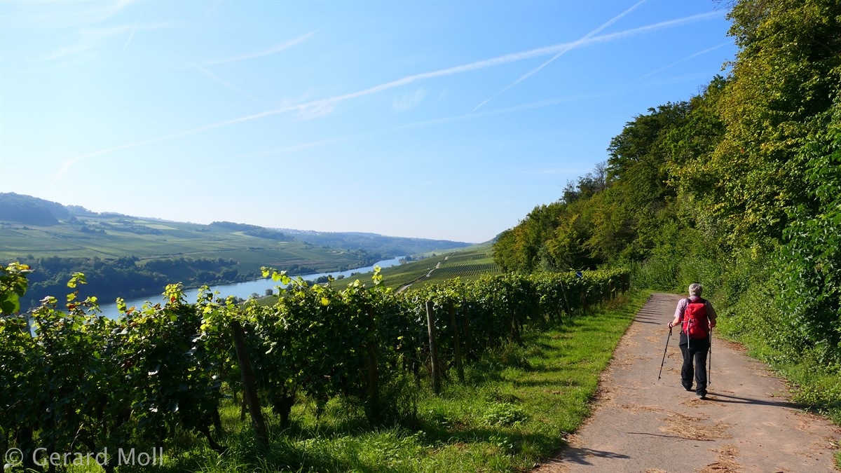 Von Machtum aus wandern wir durch die Weinberg unterhalbdes Houfels, danach steigen wir auf dessen Höhe und kehren oberhalb unseres Anstiegweges wieder in den Ort zurück.