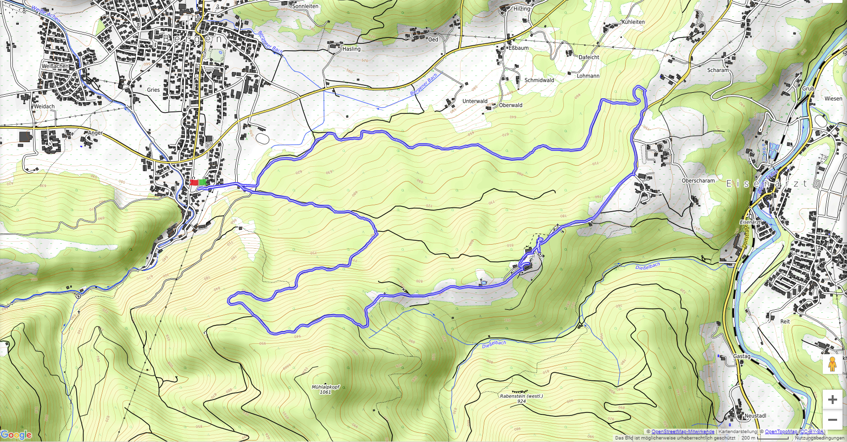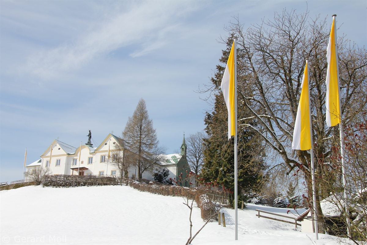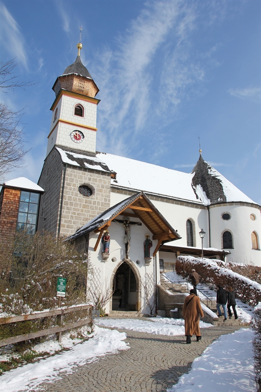 Von der Talstation (581 m) der Hochfelln-Seilbahn wandern wir zur Wallfahrtskirche Maria Eck (829 m). Über den Hammerberg (886 m) kehren wir zum Parkplatz zurück.