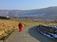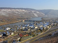Wir parken in Mehring in der Nähe der Römervilla und wandern am Moselufer entlang, vorbei an der Staustufe bis nach Detzem. Nach kurzer Ortsbesichtigung geht es weiter nach Thörnich und über die Moselbrücke nach Ensch. Dort verlassen wir das Moselufer und steigen, zunächst durch die Weinberge, später durch Wald und Wiesen, zum Zitronenkrämerkreuz hinauf. Unser Weg führt uns dann durch die Mehringer Weinlagen wieder hinunter zur Mosel und über die Brücke zum Ausgangspunkt.