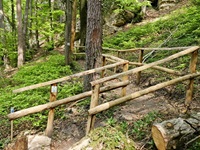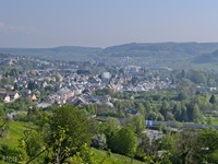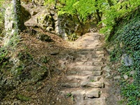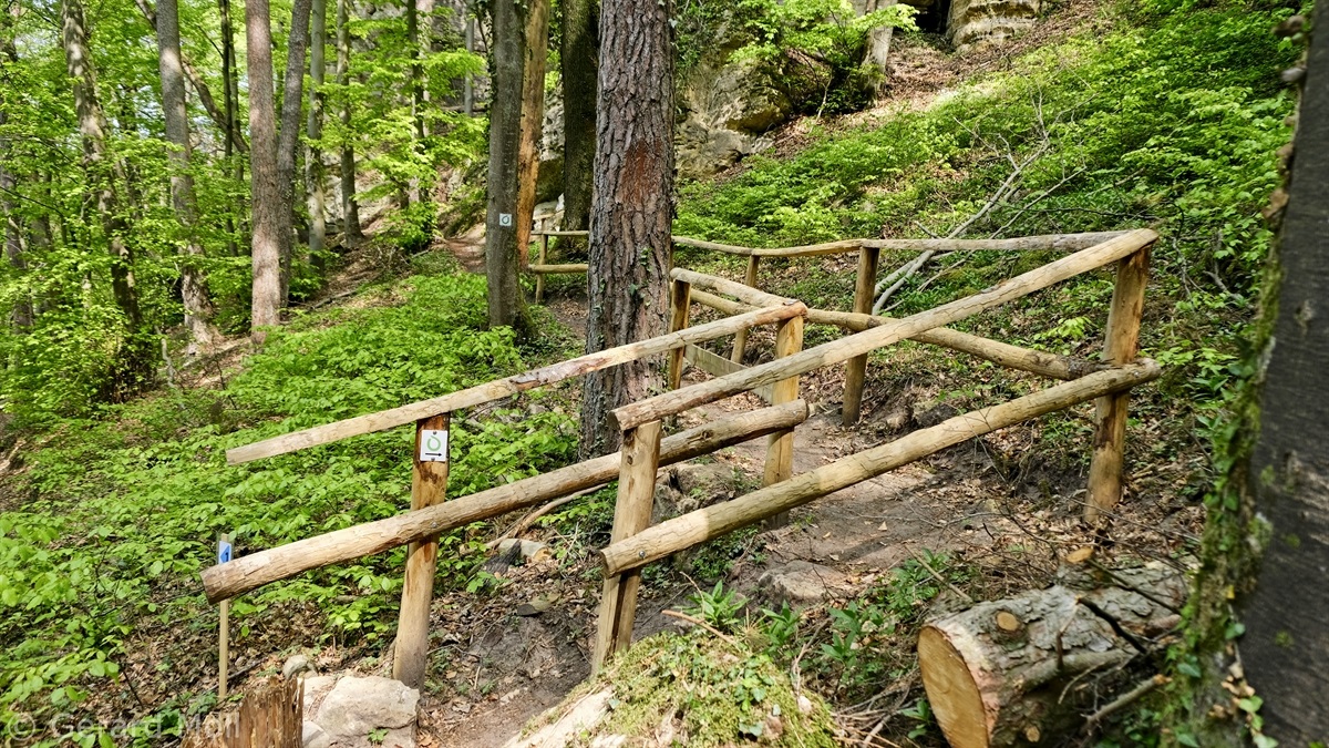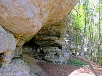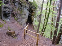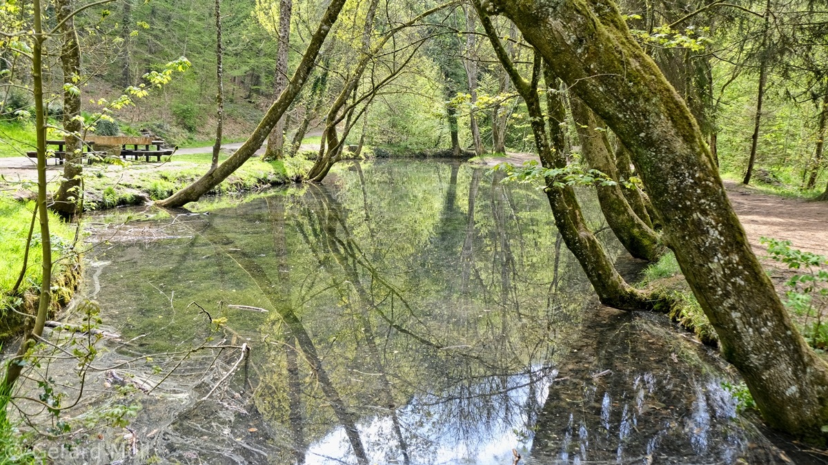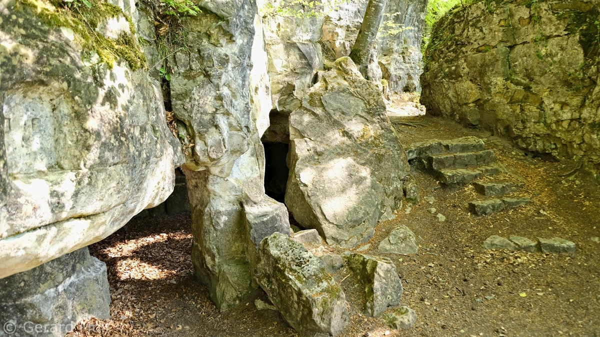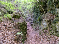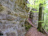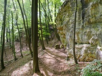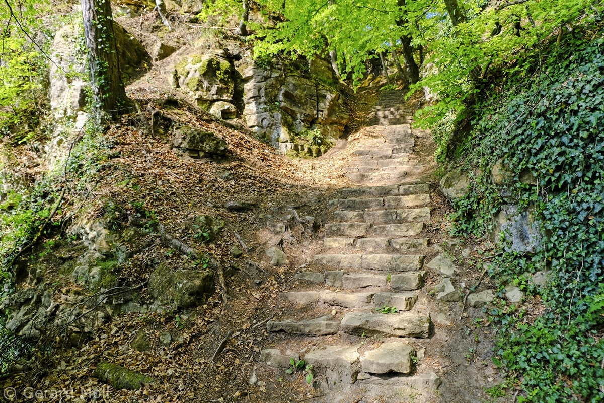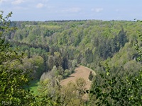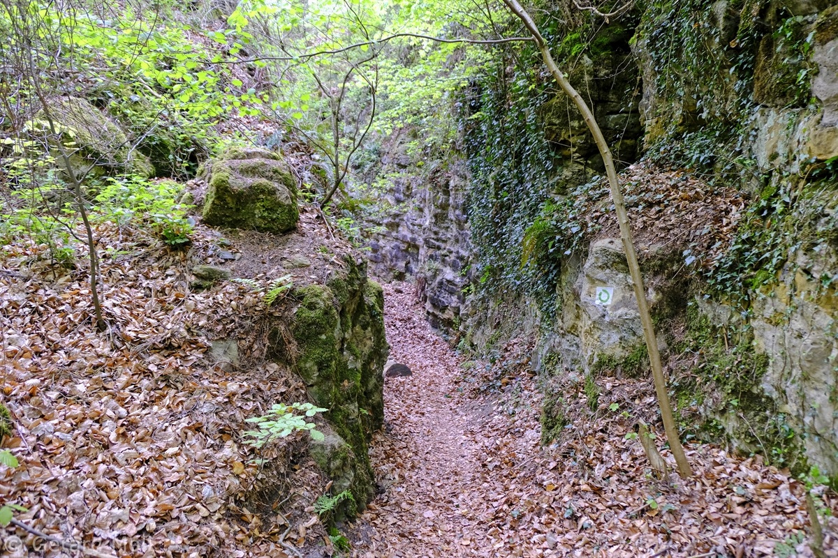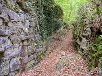 Wir parken oberhalb des Campingplatzes Kronenberg bei dem Unabhängigkeitsdenkmal. Von hier wandern wir hinüber zu den Felsformationen der Mamerleeën. Bei der Höhle der Huellee erkennen wir unter uns Schloss Schoenfels. Nach der Überquerung der Hochfläche blicken wir vom Predigtstuhl auf Burg Hollenfels. Danach geht es auf einem neu angelegten Weg in Serpentinen hinunter zum "Hunnebuer". Von hier geht es noch einmal steil auf einem wenig gepflegten Weg hinauf bis zu der interessanten Schlucht "Wollefsgriecht" von wo aus wir dann rasch wieder bei unserem Ausgangspunkt sind.
