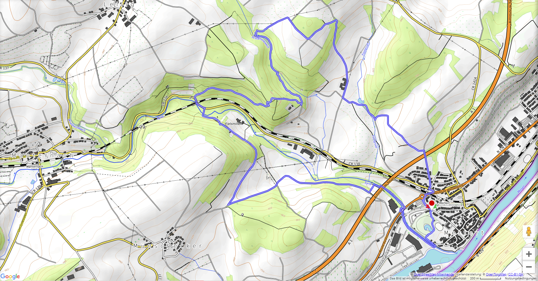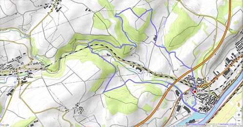 Vom Park in Mertert wandern wir am den kleinen Wasserfällen der Syr entlang ins Tal hinein. Anschließend müssen wir an dem Manternacher Fiels "100 Stufen" überwinden, bevor wir wieder nach Mertert absteigen.
