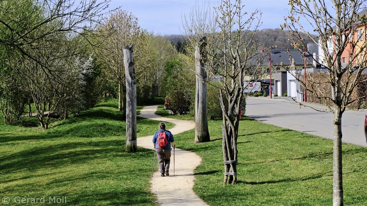 Dieser sehr gut angelegte Rundwanderweg durch Mertzig erinnert an die Geschichte Mertzigs. Von den Steinbrüchen über eine Gedenkstätte für den Maler Sosthène Weis bis zu einem Kräutergarten, der kurze Rundweg ist sehr abwechslungsreich und lohnend.