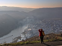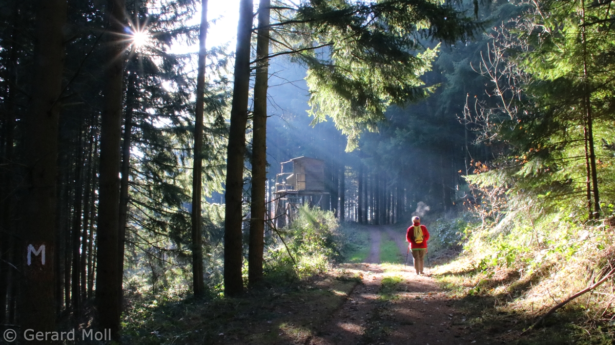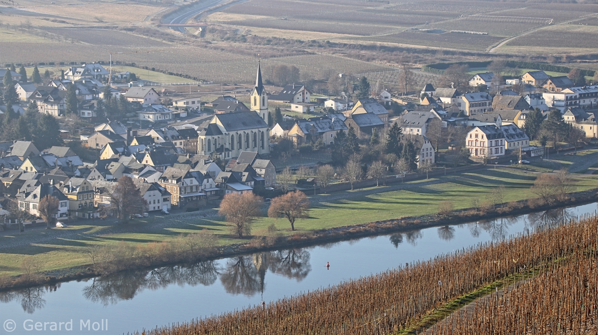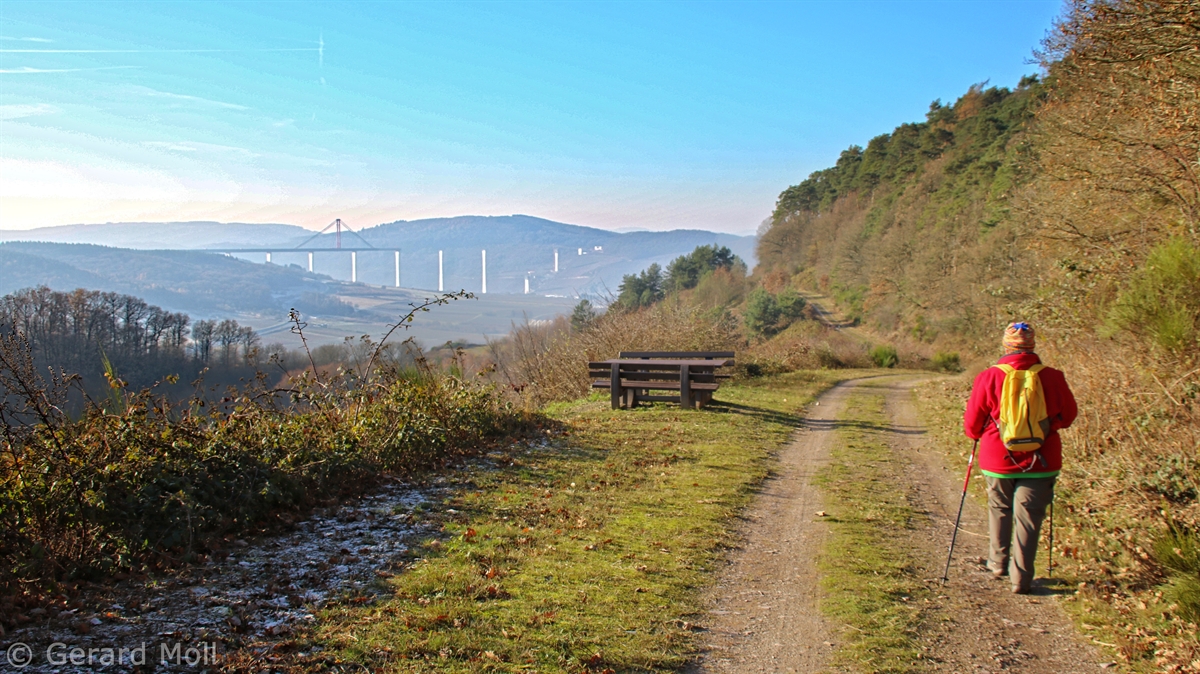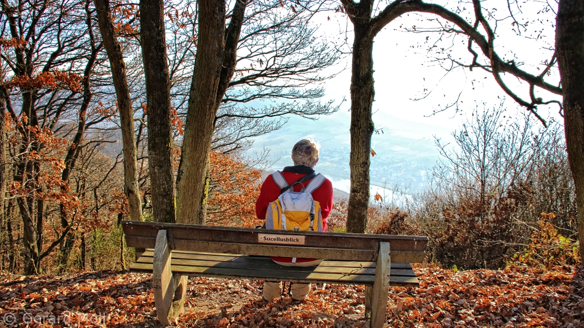 Vom Parkplatz nahe dem Berghof auf dem Mont Royal folgen wir dem Moselhöhenweg, teils am Waldrand, teils durch den Wald, bis zum Mötschenkopf. Ein kleiner Abstecher bringt uns zum Sucellusblick, dann wandern wir durch die Weinberge oberhalb von Kinheim und Kröv und steigen schließlich wieder zum Ausgangspunkt auf.
