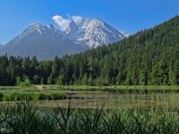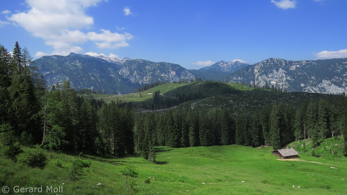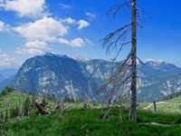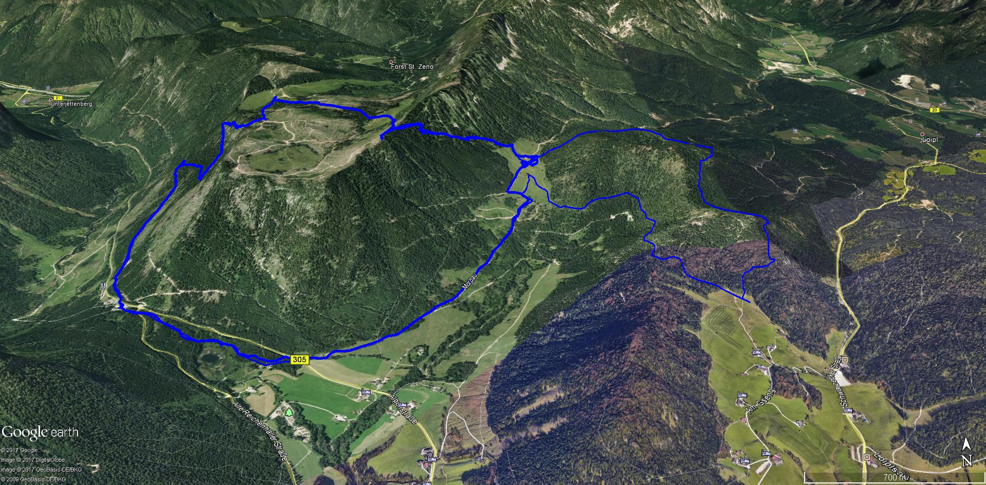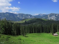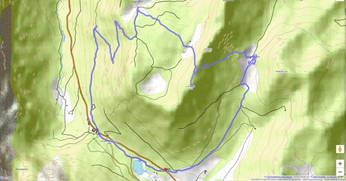 Wir parken am Schwarzbachwachtsattel (868 m) und folgen dem Almerlebnisweg über die Moosenalm und einen Sattel (1528 m) zwischen Jochköpfl und Karspitze zur Mordaualm (1194 m). Von hier steigen wir zum Taubensee ab und kehren zurück zum Schwarzbachwachtsattel.