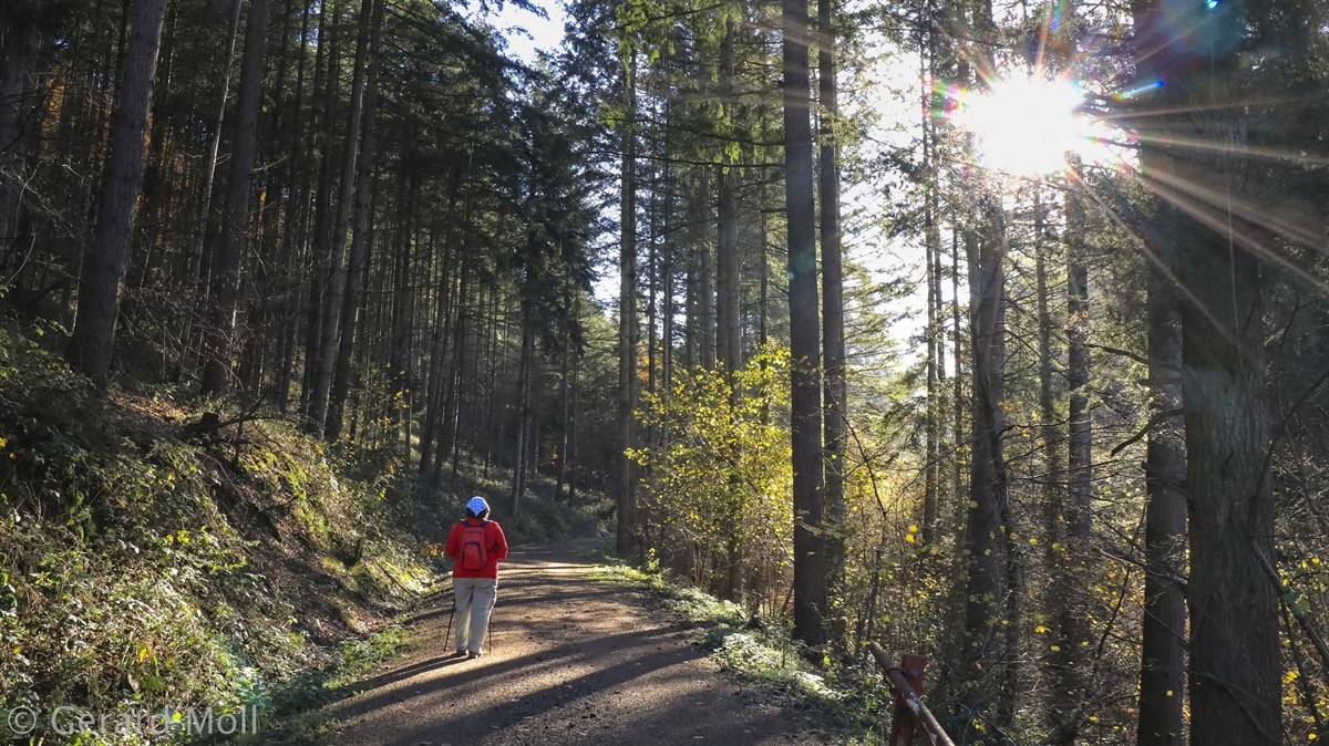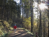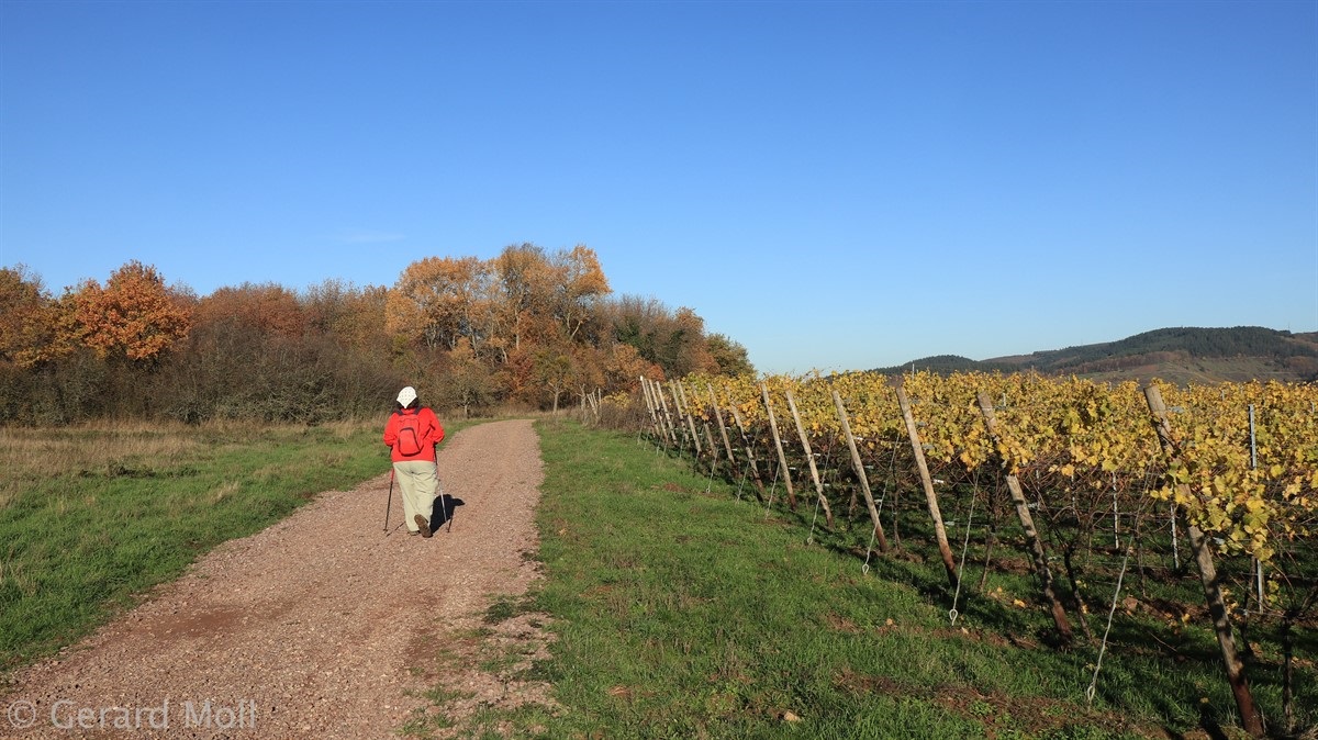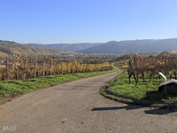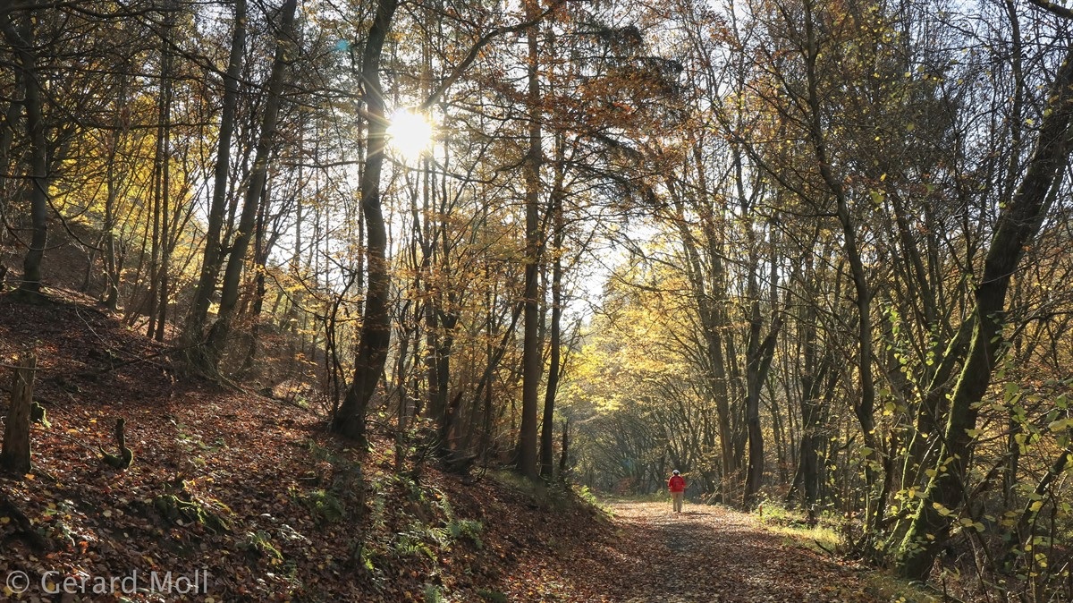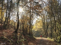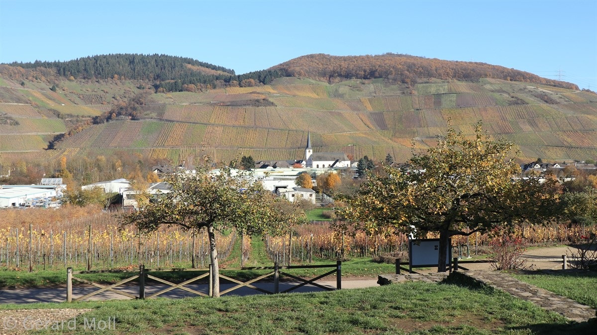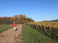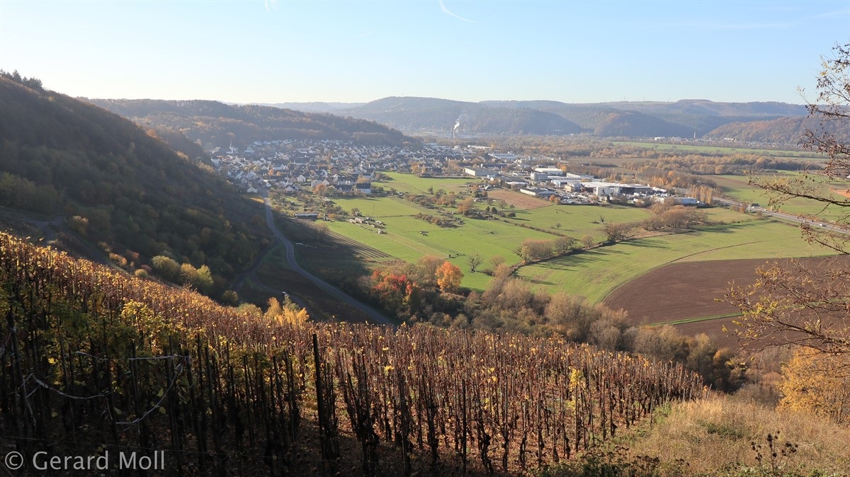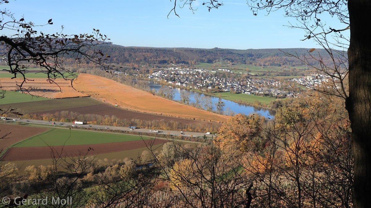 Vom Parkplatz am Kreisverkehr in Longuich gehen wir hinauf zu der Römervilla aus dem 2. Jahrhundert. Nach einer Besichtigung führt der Weg hinter der Villa hinauf in die Weinberge und an der Autobahn entlang bis zu einer Unterführung. Jenseits der Autobahn wandern wir an einem Teich vorbei hinauf in die Wälder und zum Longuicher Sauerbrunnen. Über den Ackersberg gehen wir, mit schöner Aussicht nach Kenn, zum Angelberg und hinunter nach Kirsch. Am Moselufer entlang spazieren wir dann zurück nach Longuich.