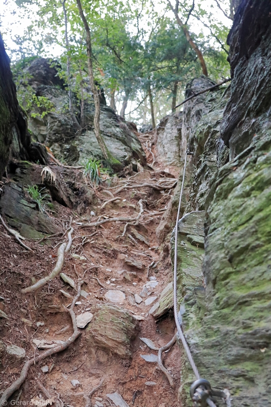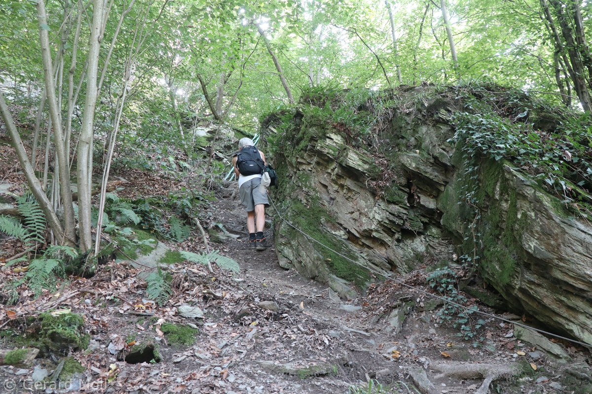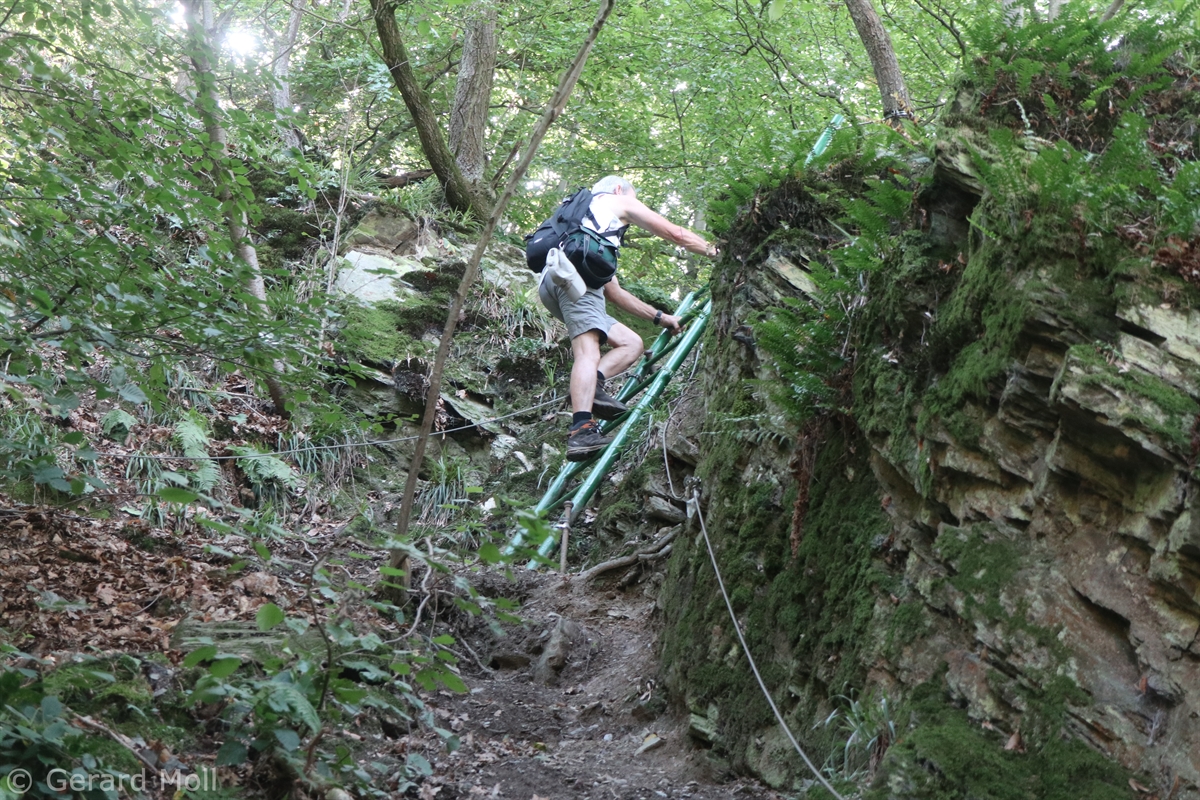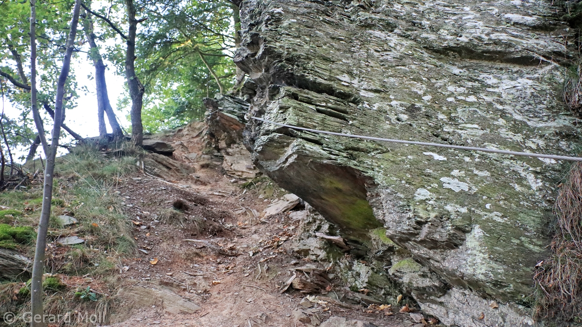 Dieser anspruchsvollere Weg startet am Sportplatz in Mehring in westlicher Richtung. Der Aufsteig zum aussichtsreichen Kumer Knüppchen führt durch sehr steile, drahtseilgesicherte Rinnen. Diese Passagen können aber auch umgangen werden. Auch der Weiterweg zum Aussichtsturm Fünfseenblick kann zum Teil auf drahtseilgesicherten Passagen bewältigt werden. Nach einer Pause auf dem 20 m hohen Turm folgt ein steiler Abstieg bis hinunter an die Mosel. Auf dem Rückweg nach Mehring sind in einem ehemaligen Steinbruch noch einmal gesicherte Passagen mit Drahtseilen und einer kurzen Leiter zu überwinden.