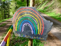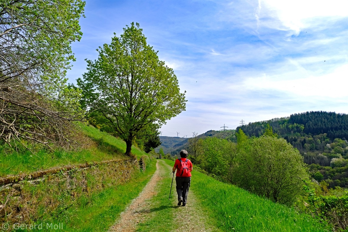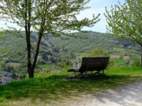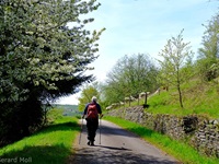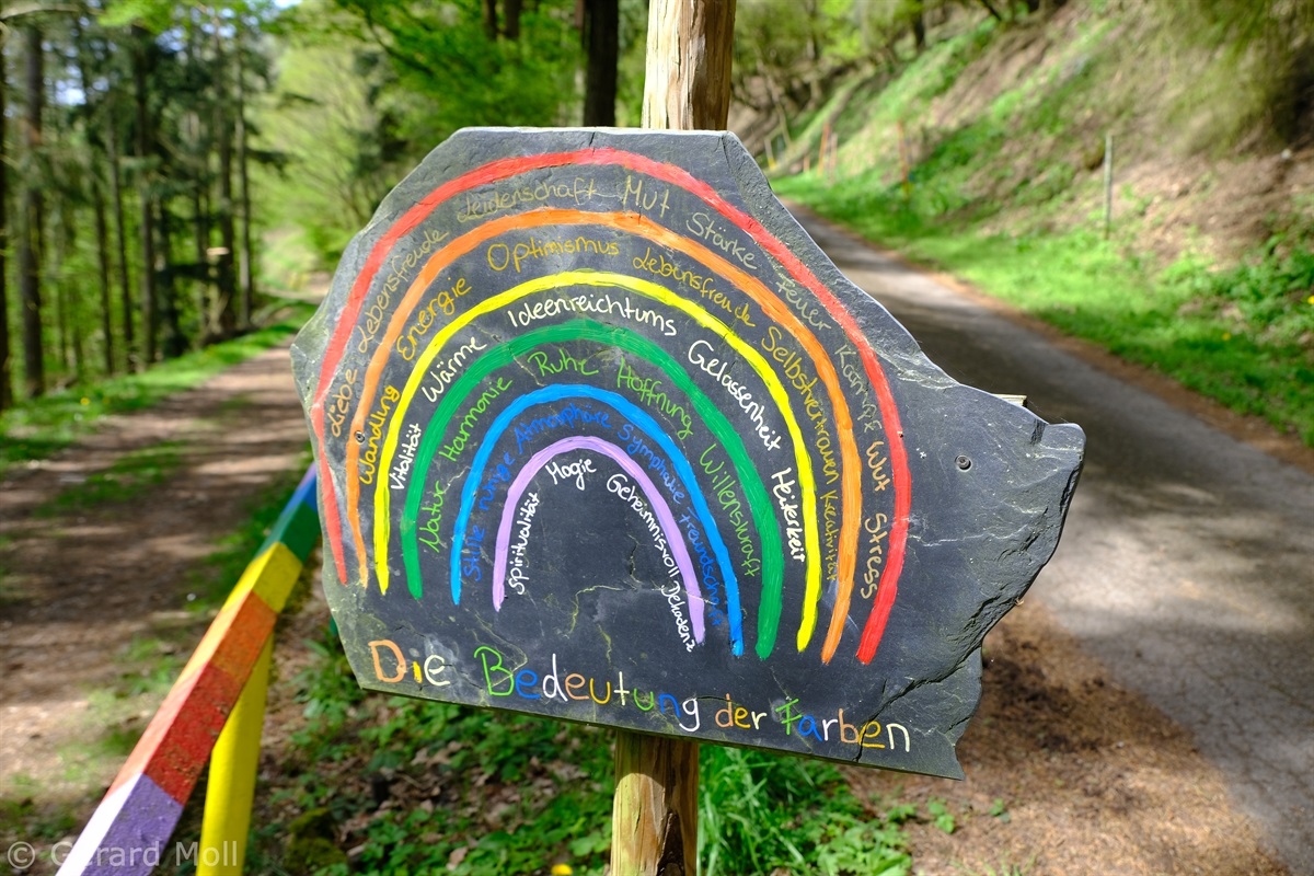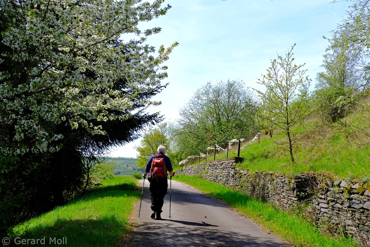 Vom Parkplatz am Sportplatz führt der Weg zunächst steiler hinauf in die Weinberge. Bald erreichen wir den Parkplatz am eigentlichen Beginn der Tour. Der hervorragend angelegte Weg bietet nicht nur ein herrliches Panorama ,sondern überrascht uns immer wieder mit interessanten Tafeln, Zeichnungen und Informationen. An zwei Stellen wird uns die Möglichkeit geboten, Abkürzungen zu folgen, aber es lohnt sich auf alle Fälle, den Weg vollständig zu begehen.