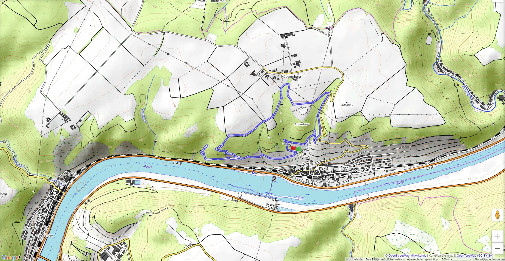 Vom Parkplatz am fränkischen Gräberfeld bei Müden wollen wir zuerst bis zum Müdener Wasserfall. Da das letzte Stück des Weges aber in schlechtem Zustand war, haben wir das Ziel nicht ganz erreicht und sind zum Naturschutzgebiet Krabaun zurück gewandert. Von hier führt der Keltenweg steil hinauf (Trittsicherheit erforderlich) bis zum Aussichtspunkt Krabin's Käppche. Vom Ortsrand von Müdener Berg folgen wir dem historischen Wanderweg am Hungerkreuz vorbei zurück zum fränkischen Gräberfeld.
