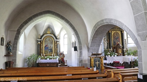 Bild in Lightbox öffnen (open image in lightbox). Die bereits im 14. Jahrhunderts erwähnte Kirche zur hl. Katharina erhielt ihre heutige Form um 1510. Sie besitzt zwei Chorräume. Wandgemälde mit Apostel-Darstellungen aus dem 17. Jahrhundert.