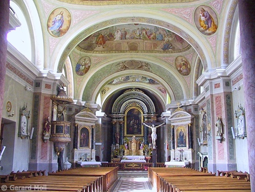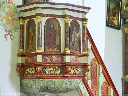 Bild in Lightbox öffnen (open image in lightbox). Von der alten Kirche blieben beim Neubau 1838 nur noch die Seitenkapelle von 1581 und der spätgotische Turm erhalten. Kuppelbilder aus dem späten 19. Jahrhundert.