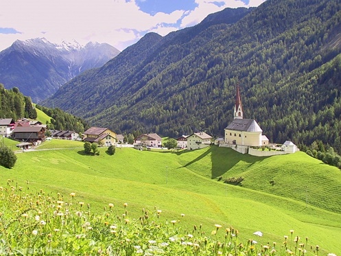 Bild in Lightbox öffnen (open image in lightbox). Die Pfarrkirche zur hl. Gertrud in Mühlwald.