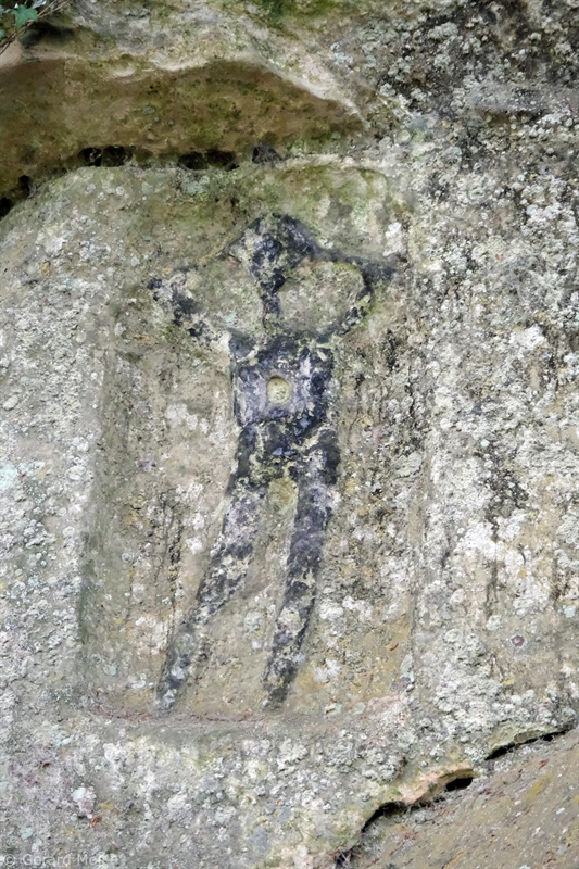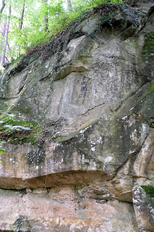 Vom Parkplatz an der Heringer Mühle ist es nicht weit bis zu dem "Schwaarze Mann", eine in grauer Vorzeit angebrachten schwarzen Felszeichnung. Allerdings hat es eine Weile gedauert, bis wir die Zeichnung auf den Felsen entdeckt haben. Durch Wald erreichen wir die interessante Ruine der Heringerburg, ehe wir zum Ausgangspunkt absteigen.