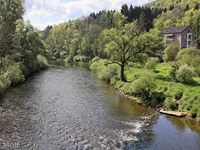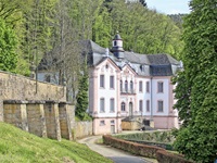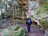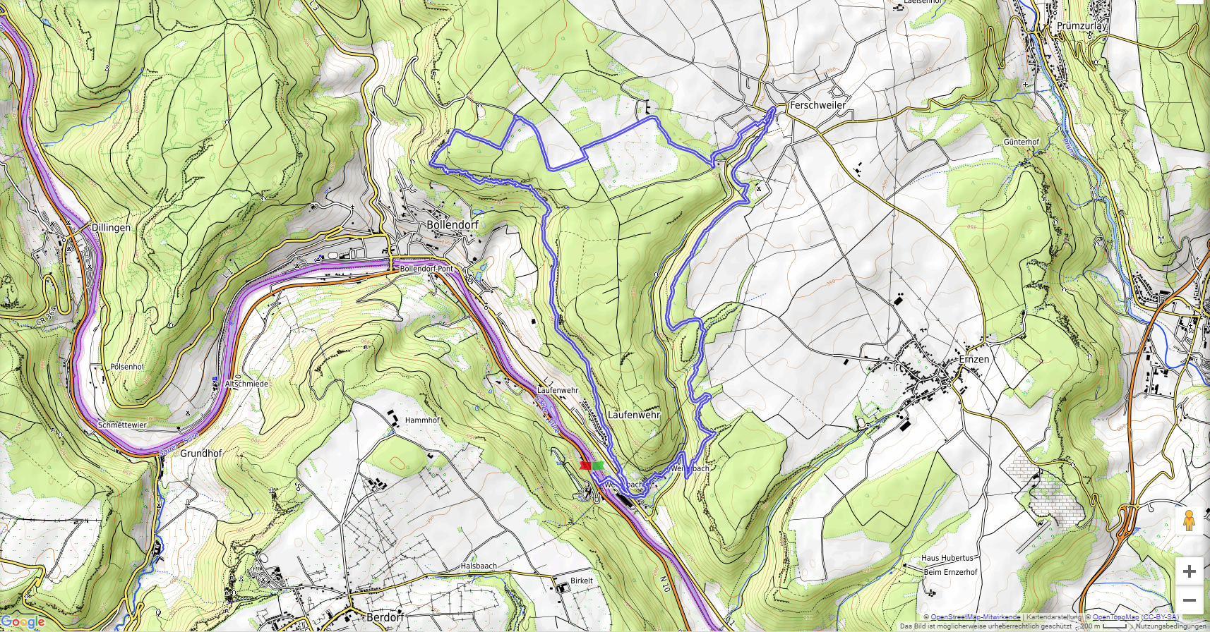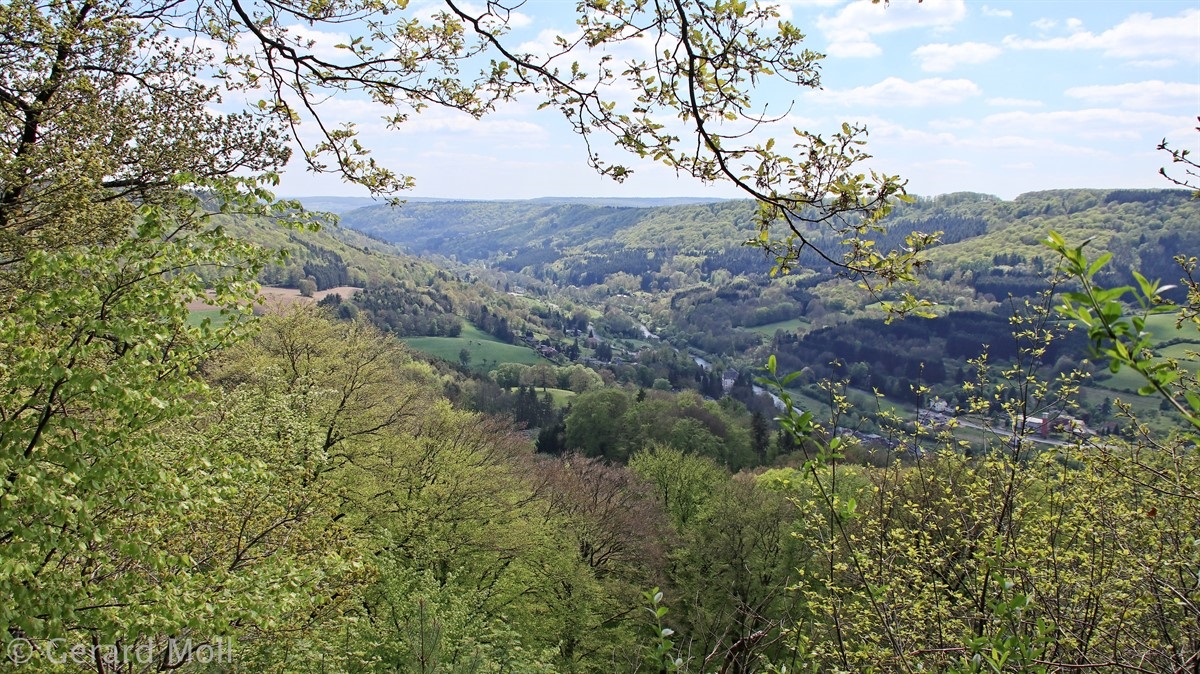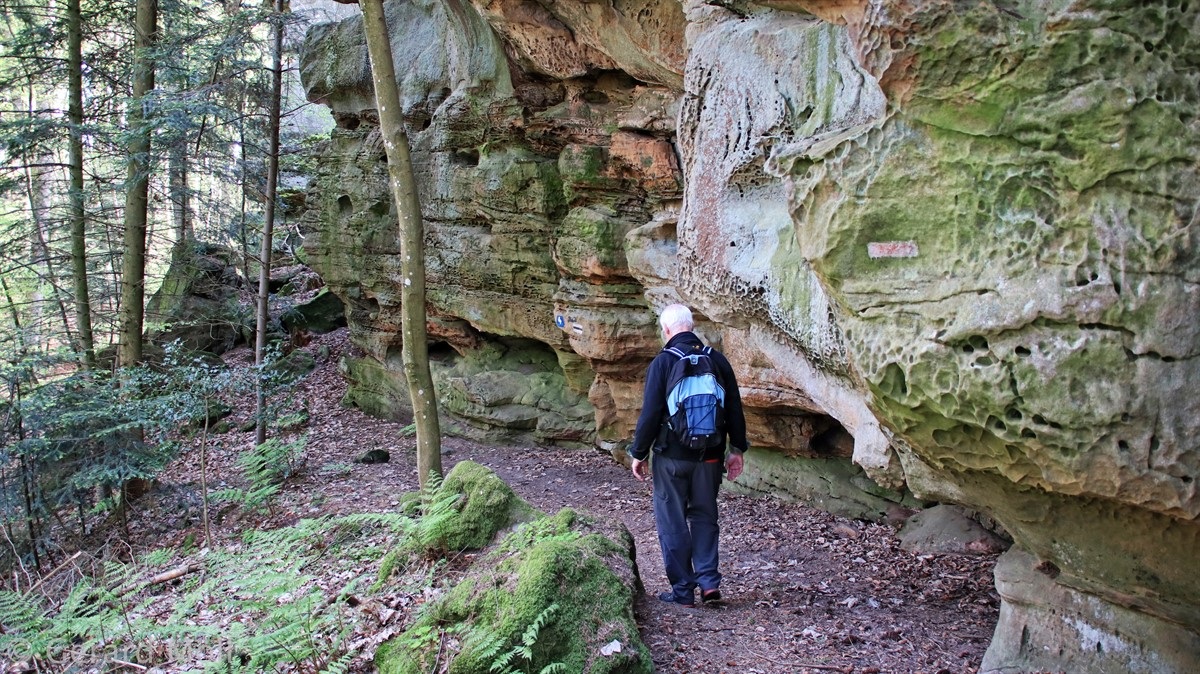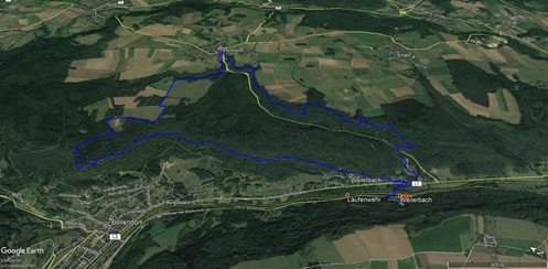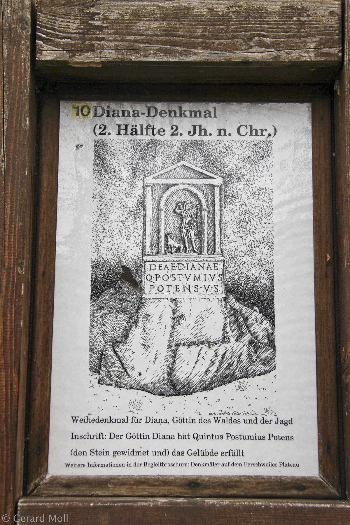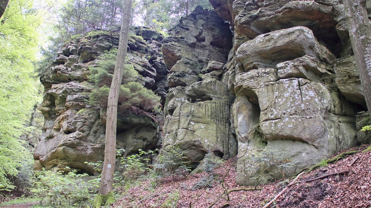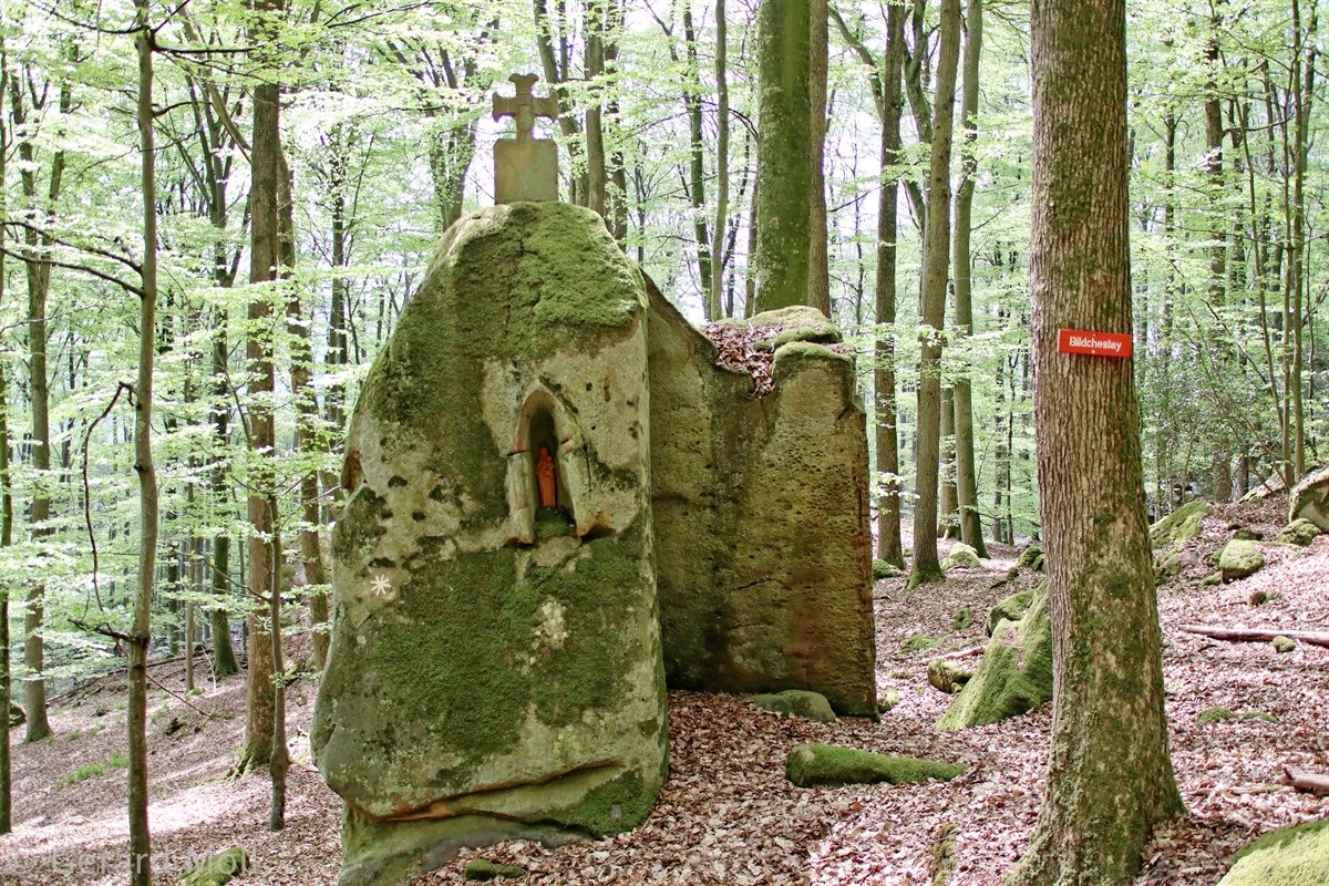 Diese Tour verläuft normalerweise auf der Luxemburger und der deutschen Seite. Wir haben nur den Teil des Weges gemacht, der sich auf der deutschen Seite befindet. Wir starten von Weilerbach aus, wo wir als erstes auf das schöne Barockschloss Weilerbach treffen. Dann geht es hinauf zu den Schweineställen, wo Schweineskulpturen daran erinnern, dass früher die Schweine von Bollendorf hierher getrieben wurden. Vorbei an interessanten Felsformationen erreichen wir den Ort Ferschweiler. Über den Druidenstein, die Ossenlay und die Bildcheslay kommen wir schließlich zum Diana-Denkmal, dem Sockel eines römischen Reliefs.