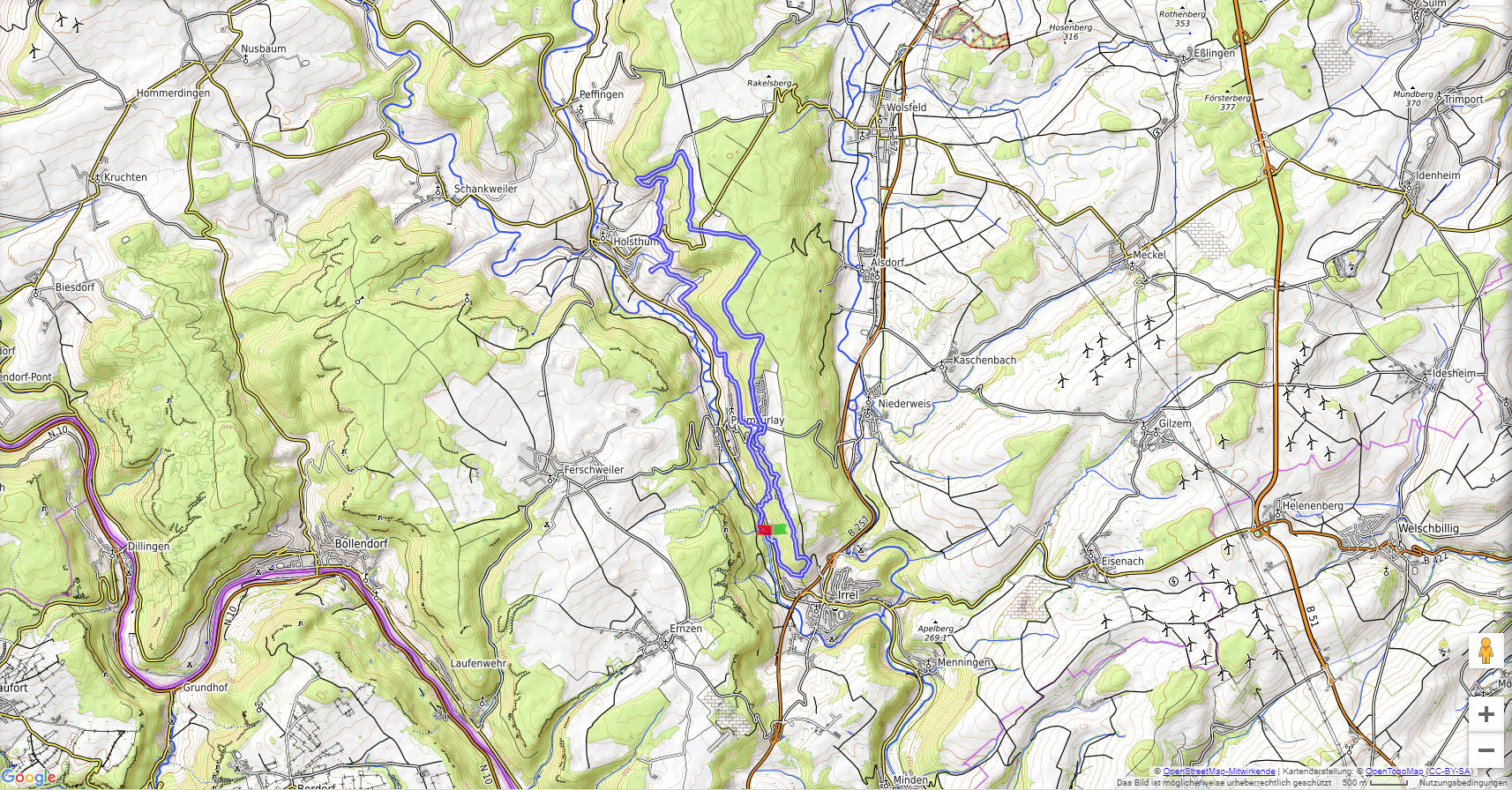 Diese Runde startet bei den Irreler Wasserfällen. Wir steigen von hier hinauf zu den Ruinen der Prümer Burg. Der Weiterweg bringt uns an den Überresten der römischen Villa in Holsthum vorbei, dann folgt die Rochuskapelle. Über den Rücken, der Prüm und Nims trennt, wandern wir, zum Teil an Felsen mit schönen Ausblicken vorbei, bis zum Katzenkopf-Bunker, einem Überrest des Westwalls.