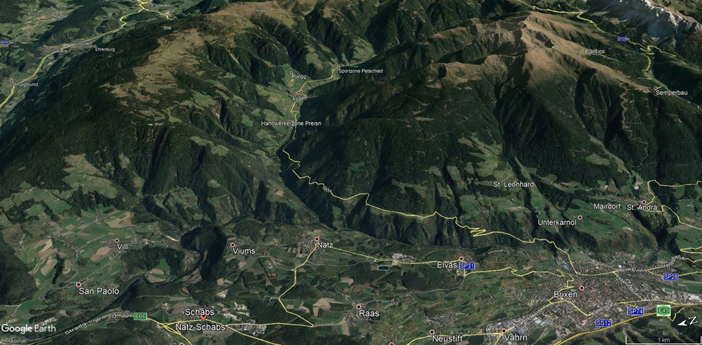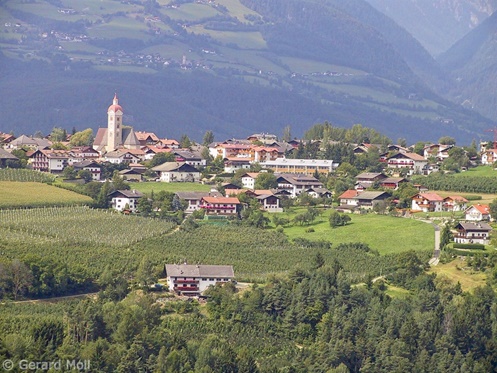 Natz liegt auf einer Hochfläche zwischen Rienz und Eisack inmitten von Obstkulturen.