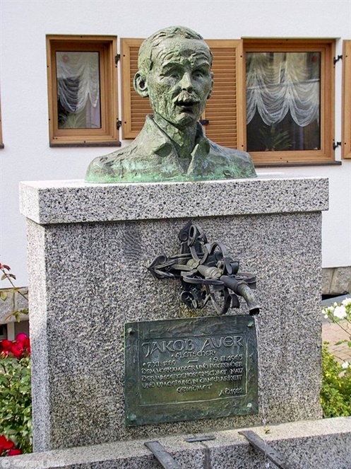Bild in Lightbox öffnen (open image in lightbox). Denkmal für Rudolf Auer, den Begründer der Natzer Wassergenossenschaft.