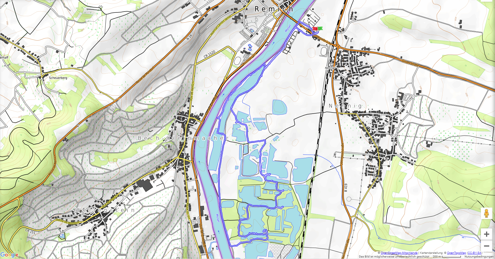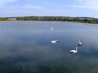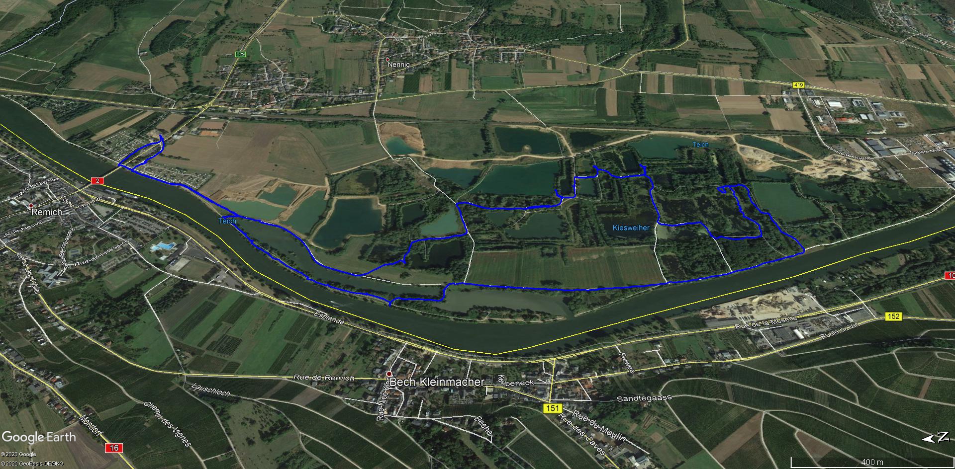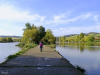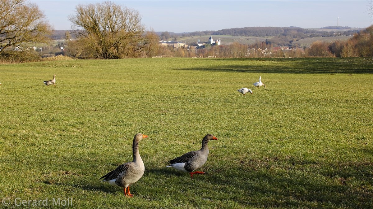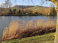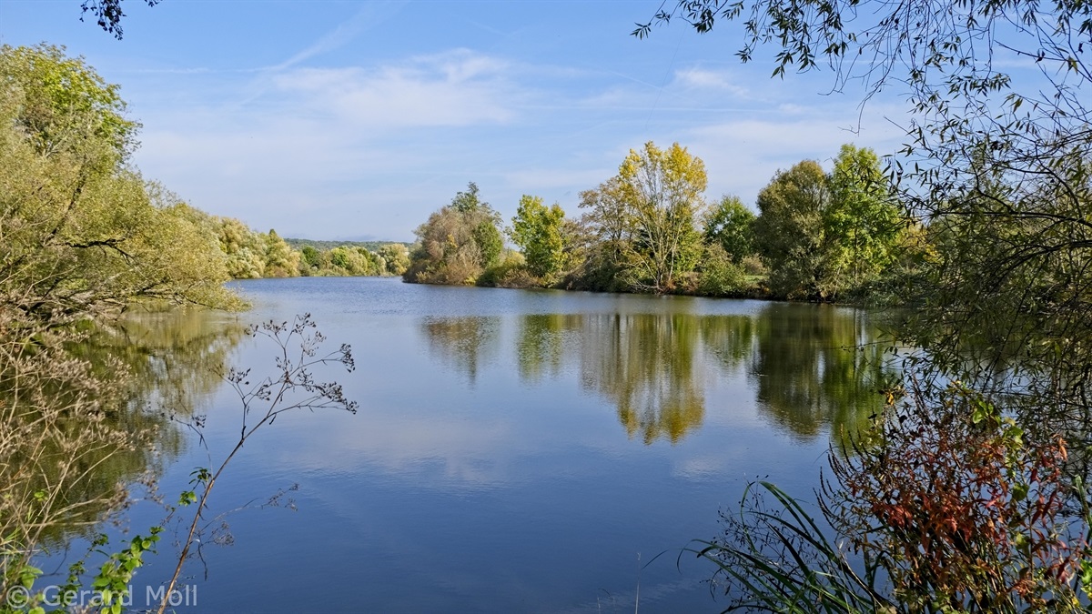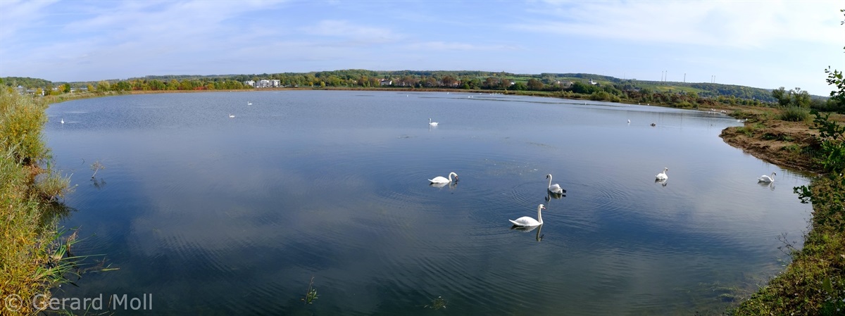 Wir parken in Nennig bei der Grenzbrücke und wandern fast eben hinein in das Naturschutzgebiet an den Baggerweihern. Hier können wir Reiher, Schwäne, Kormorane und viele andere Vögel beobachten.
