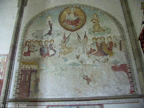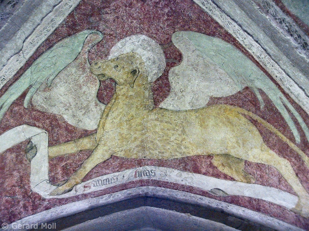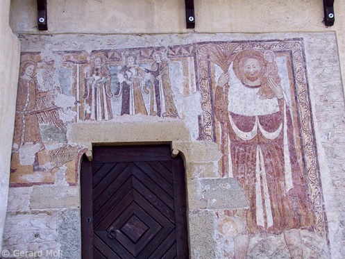 Bild in Lightbox öffnen (open image in lightbox). Das romanische Kirchlein St. Michael in Mazon wurde im 17. Jahrhundert umgebaut. Schöne Wandmalereien.