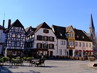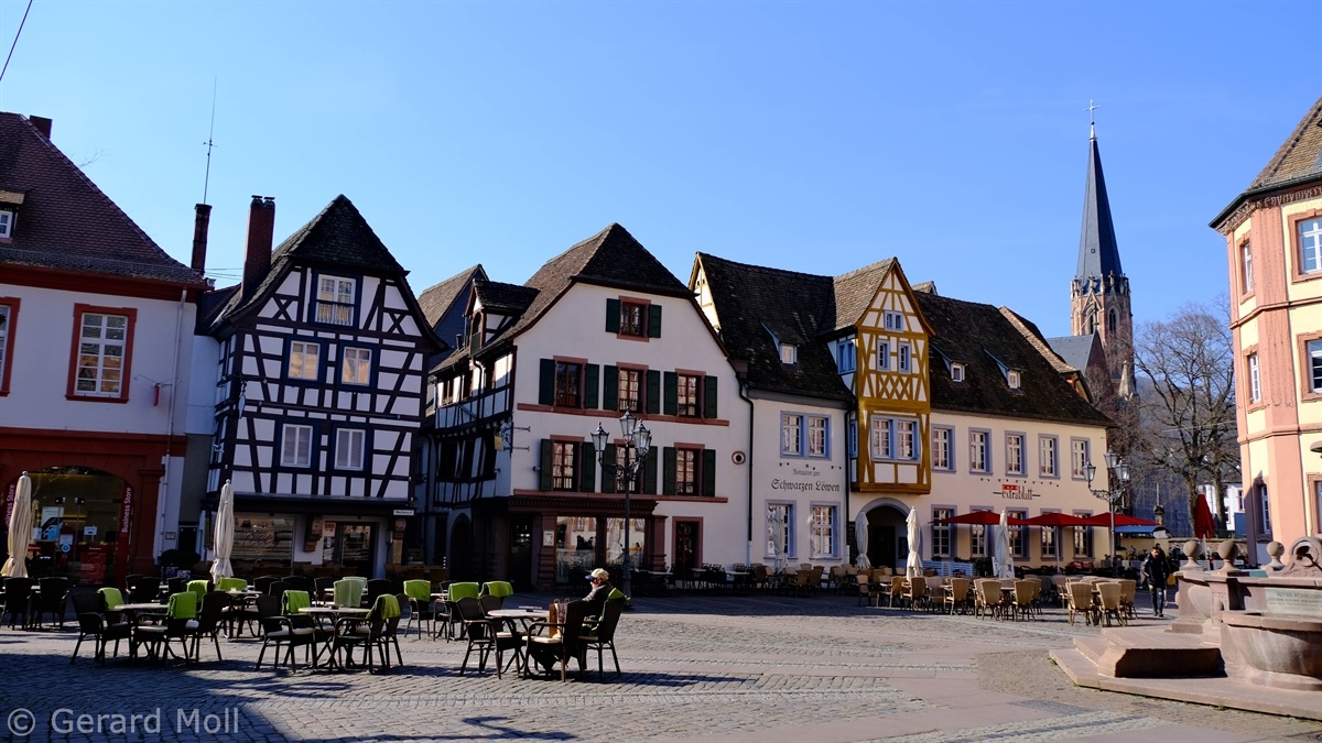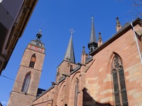 Der kostenlose Parkplatz Festwiese ist ein guter Ausgangspunkt für die Erkundung der über 50.000 Einwohner zählenden Stadt. Besonders sehenswert sind der Elwetritschenbrunnen sowie die Stiftskirche (1368) am Marktplatz. Der Stadtteil Gimmeldingen ist bekannt für sein Mandelblütenfest.