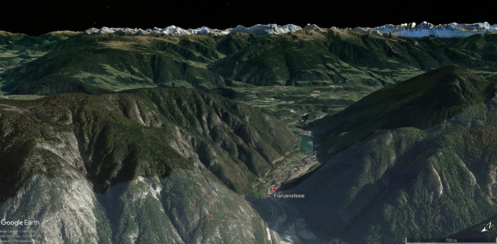 Oberau liegt wenige Kilometer nördlich von Franzensfeste im Eisacktal.