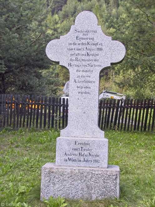 Bild in Lightbox öffnen (open image in lightbox). Das Sachskreuz wurde ebenfalls im Jahre 1902 vom Andreas-Hofer-Verein Wien errichtet zum Gedenken an die Gefallenen vom 04. August 1809.