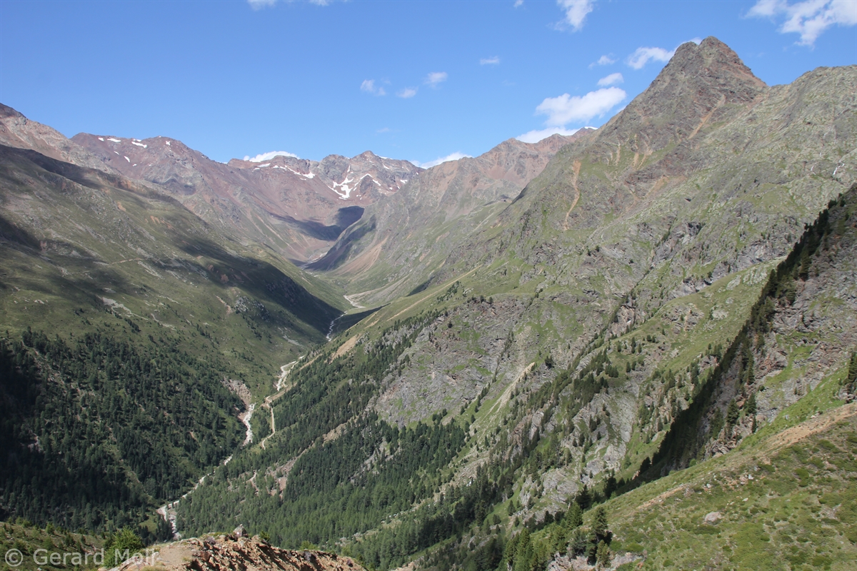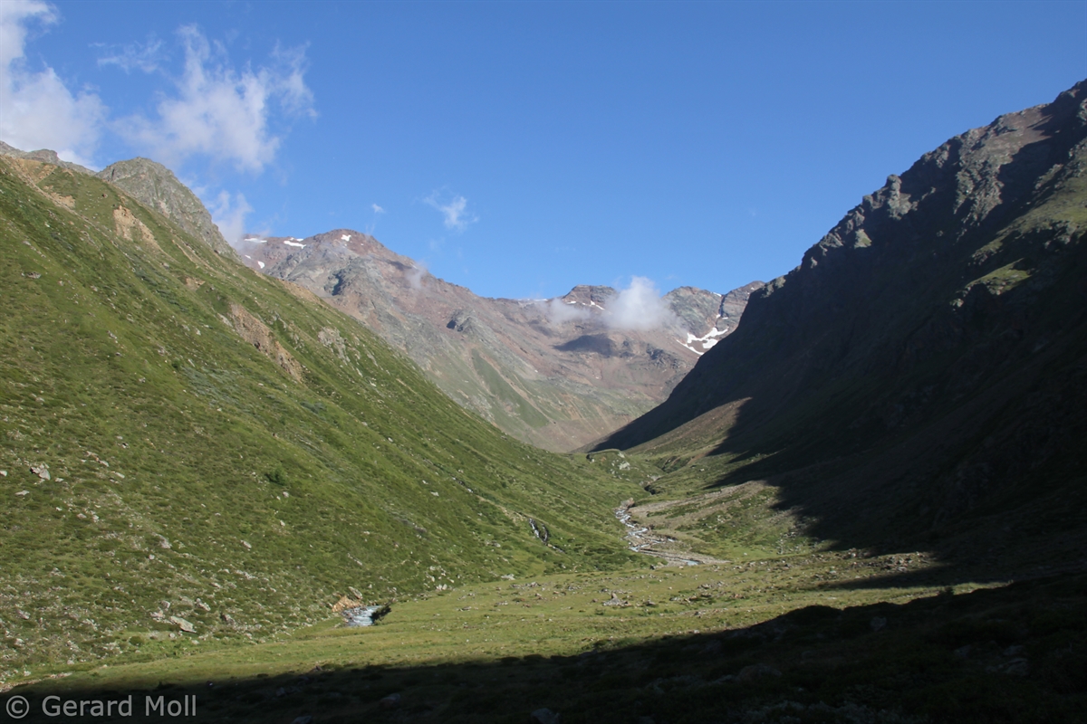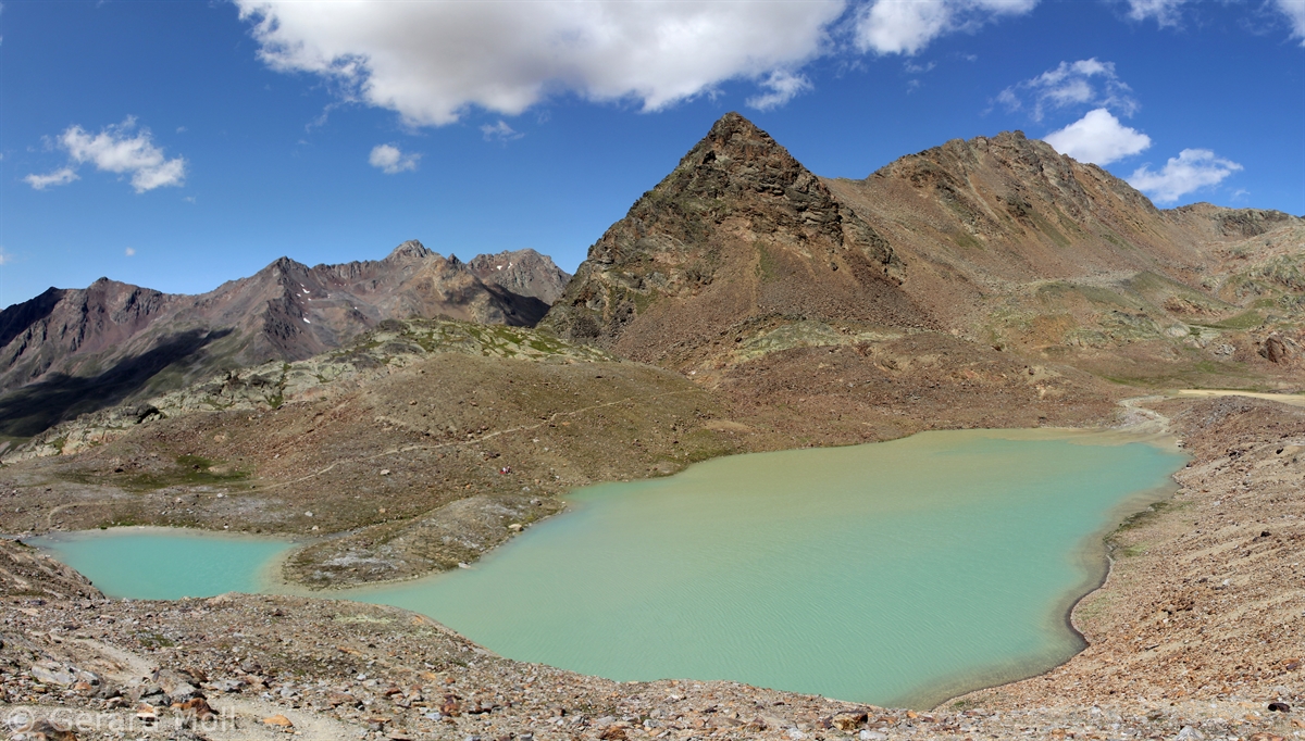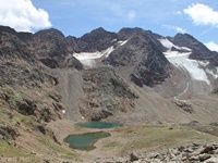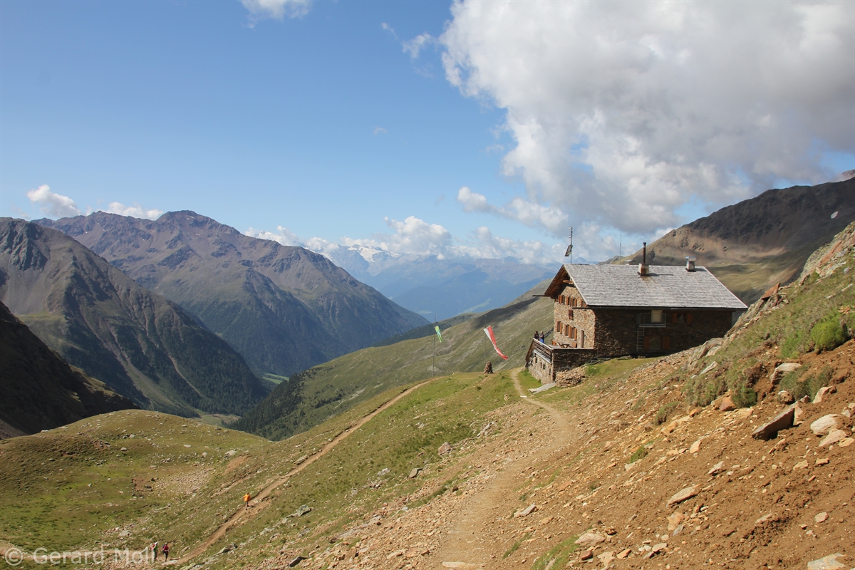 Im Matschertal kann man bis zu den Glieshöfen (1827 m) fahren. Von hier führt der Weg taleinwärts an der Matscher Alm vorbei, dann steiler hinauf bis zu der Oberetteshütte (2670 m). Der Weiterweg führt durch eine sehr abweisend aussehende, schuttige Flanke, aufatmend erreicht man das Plateau der Saldurseen. Wer noch über überschüssige Kräfte verfügt, kann noch den Abstecher zum Bildstöckljoch (3097 m) machen, der Blick ins Schnalstal belohnt einen für die Mühe. Dann gehen wir an den Saldurseen vorbei durch herrliches Gelände, bis der Weg wieder nach unten zur Inneren Matscher Alm und zum Glieshof führt.