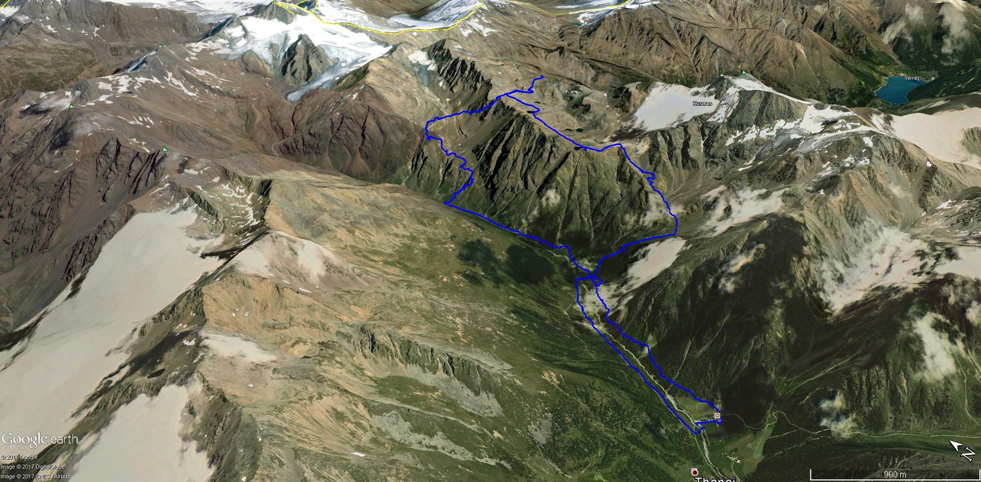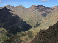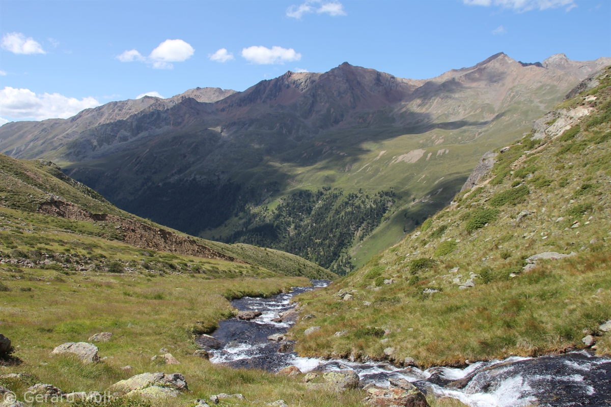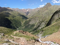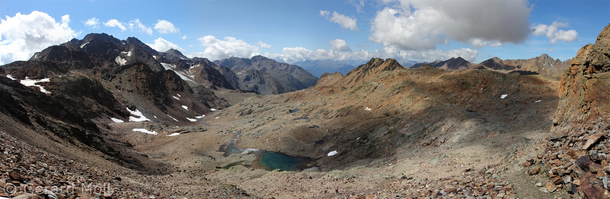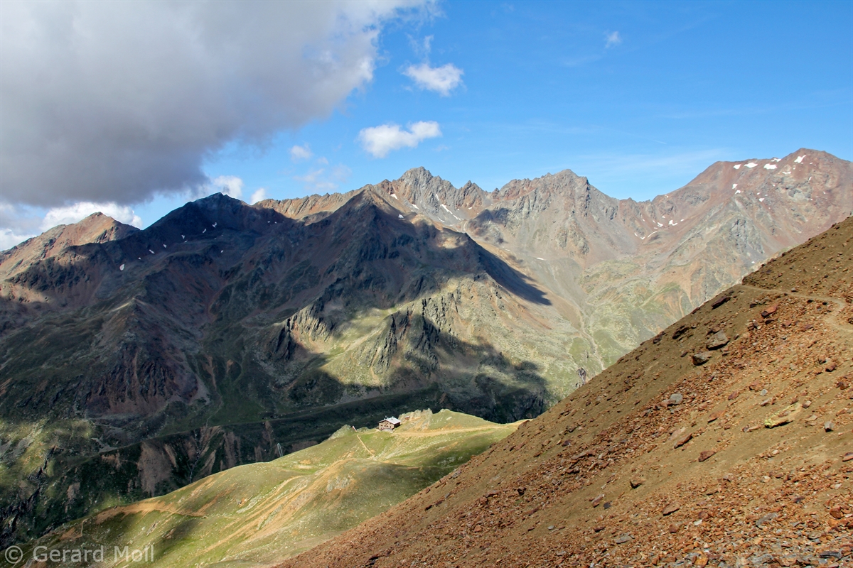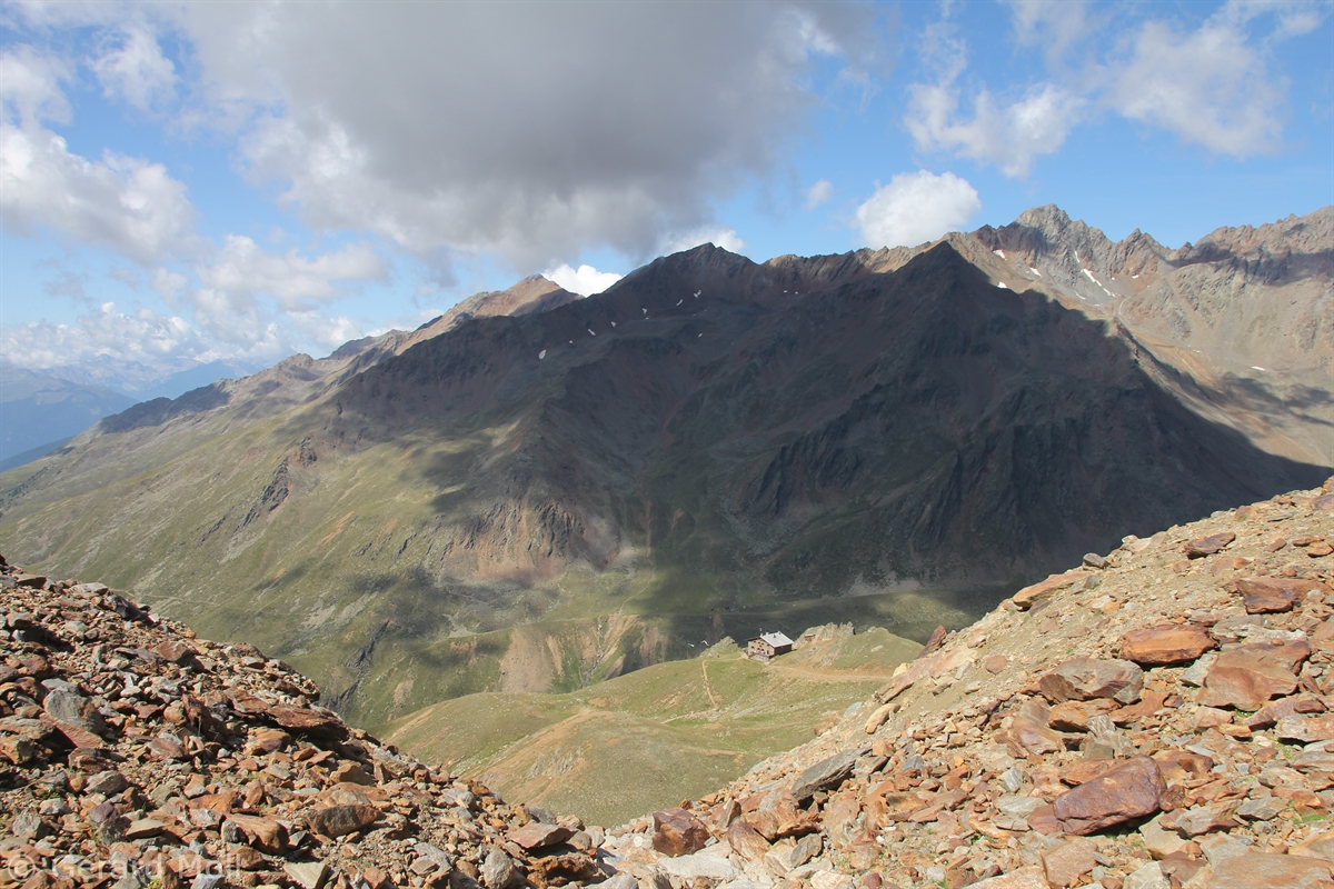 Im Matschertal kann man bis zu den Glieshöfen (1827 m) fahren. Von hier führt der Weg taleinwärts an der Matscher Alm vorbei, dann steiler hinauf bis zu der Oberetteshütte (2670 m). Der Weiterweg führt durch eine sehr abweisend aussehende, schuttige Flanke, aufatmend erreicht man das Plateau der Saldurseen. Wer noch über überschüssige Kräfte verfügt, kann noch den Abstecher zum Bildstöckljoch (3097 m) machen, der Blick ins Schnalstal belohnt einen für die Mühe. Dann gehen wir an den Saldurseen vorbei durch herrliches Gelände, bis der Weg wieder nach unten zur Inneren Matscher Alm und zum Glieshof führt.