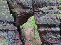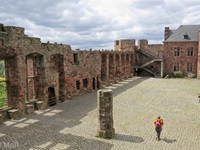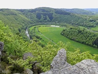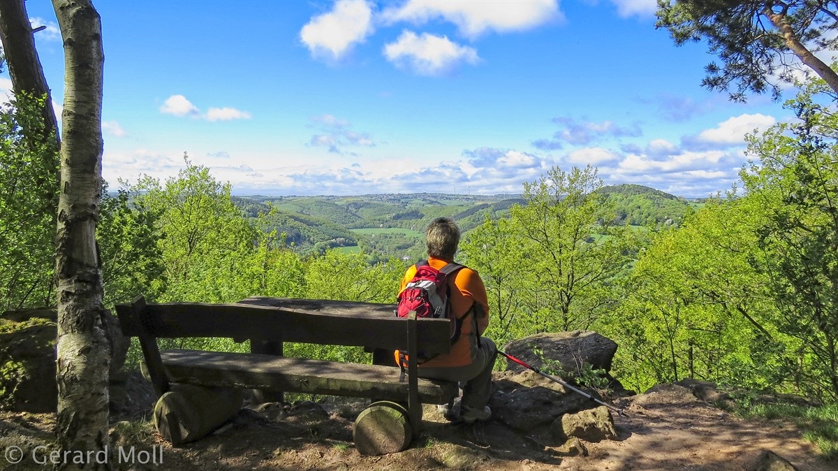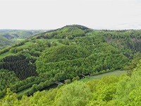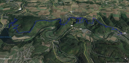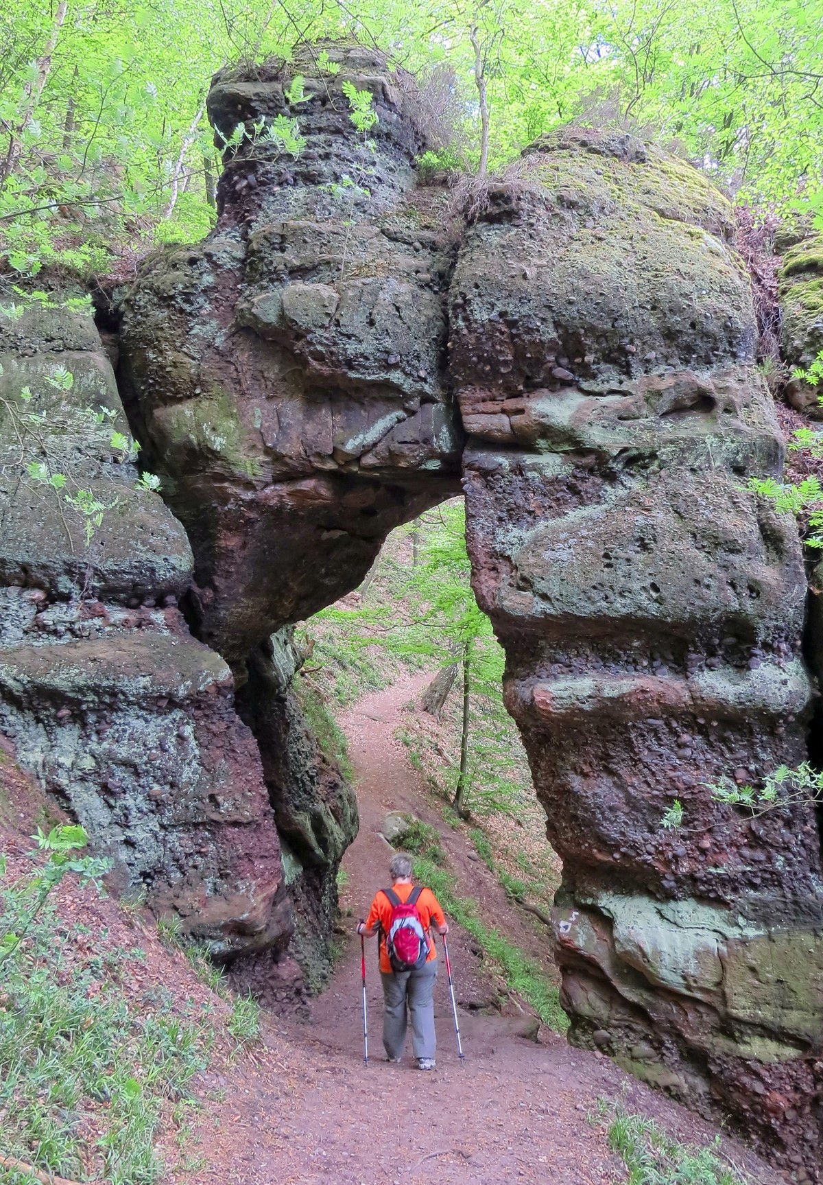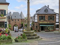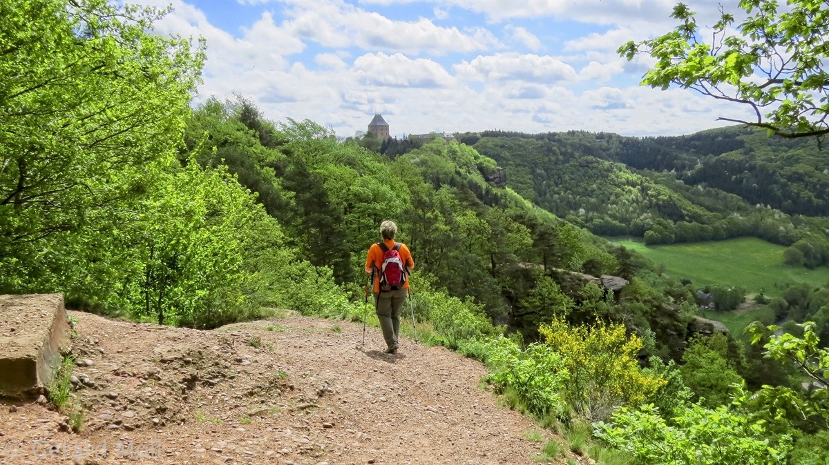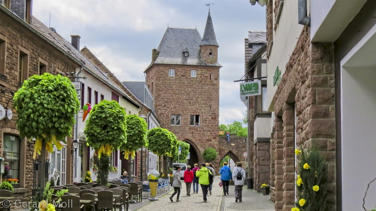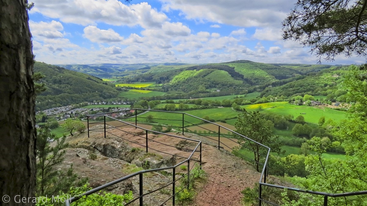 Die Bahn bringt uns entlang der Rur von Abenden nach Obermaubach. Östlich des Staubeckens steigen wir hinauf zur Höhe und vorbei am Eugenienstein wandern wir mit herrlichen Ausblicken über den Höhenzug. Durch das spektakuläre Hindenburgtor kommen wir nach Nideggen und besichtigen das schöne Städtchen mit seinen Stadttoren und der riesigen Burg. An interessanten Felsformationen vorbei erreichen wir Abenden.
