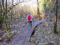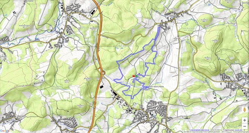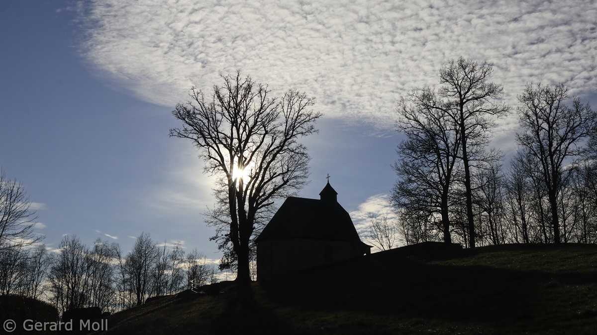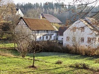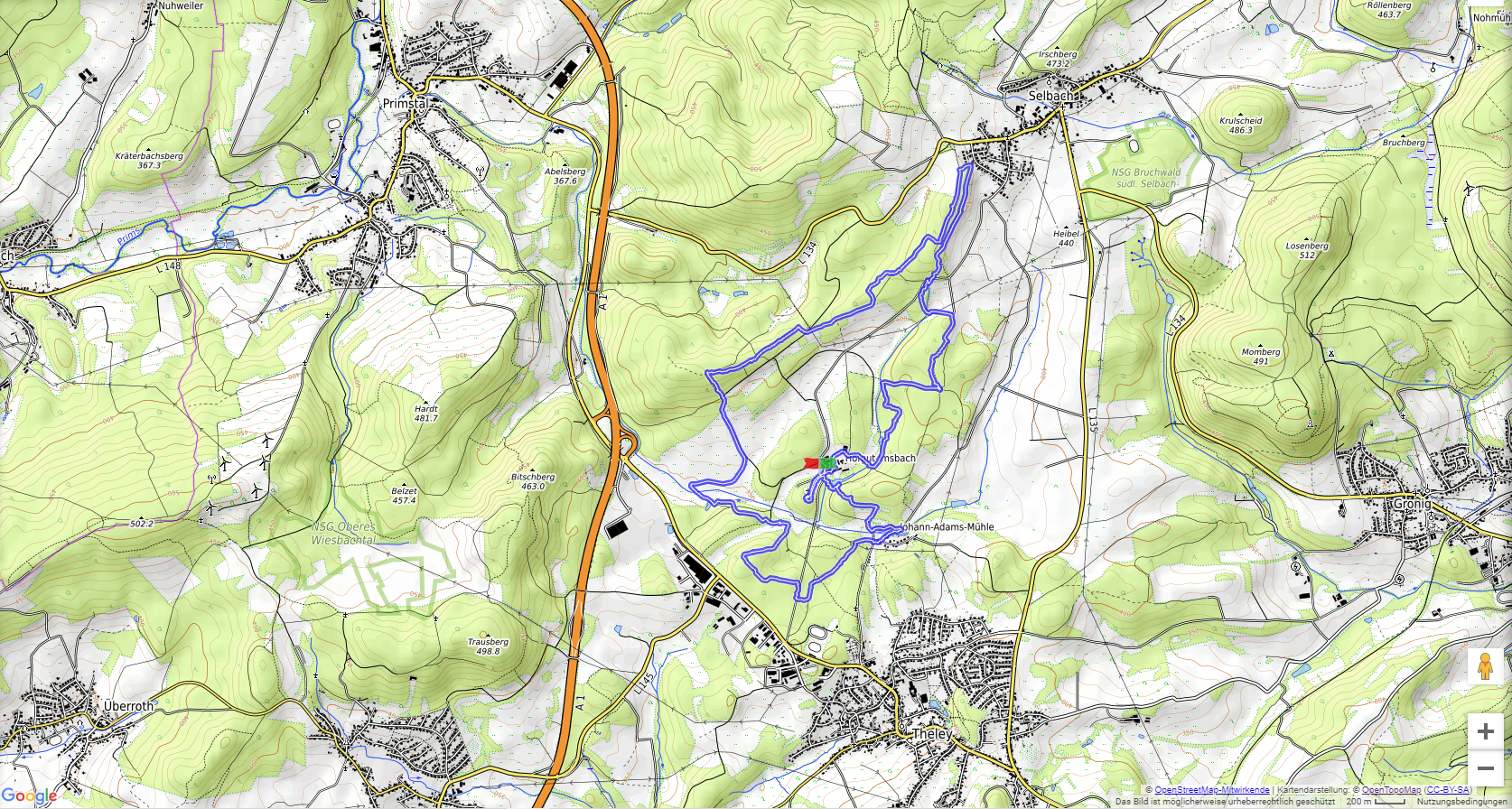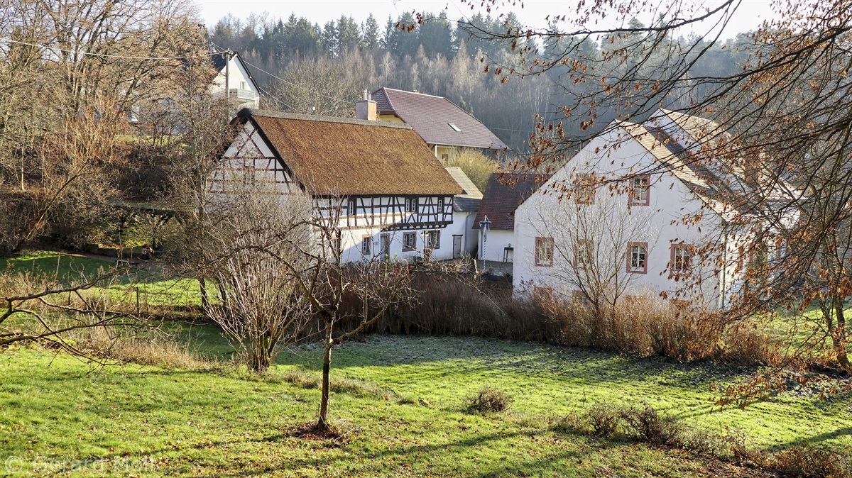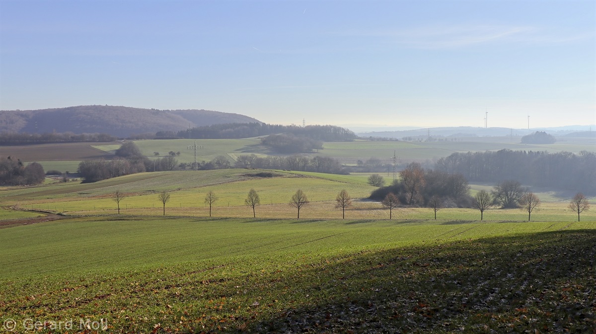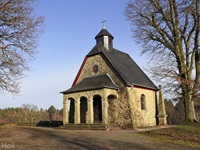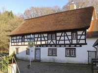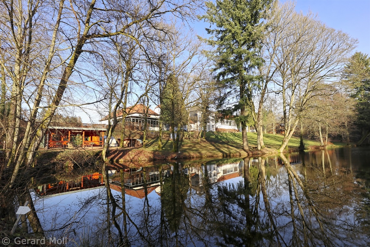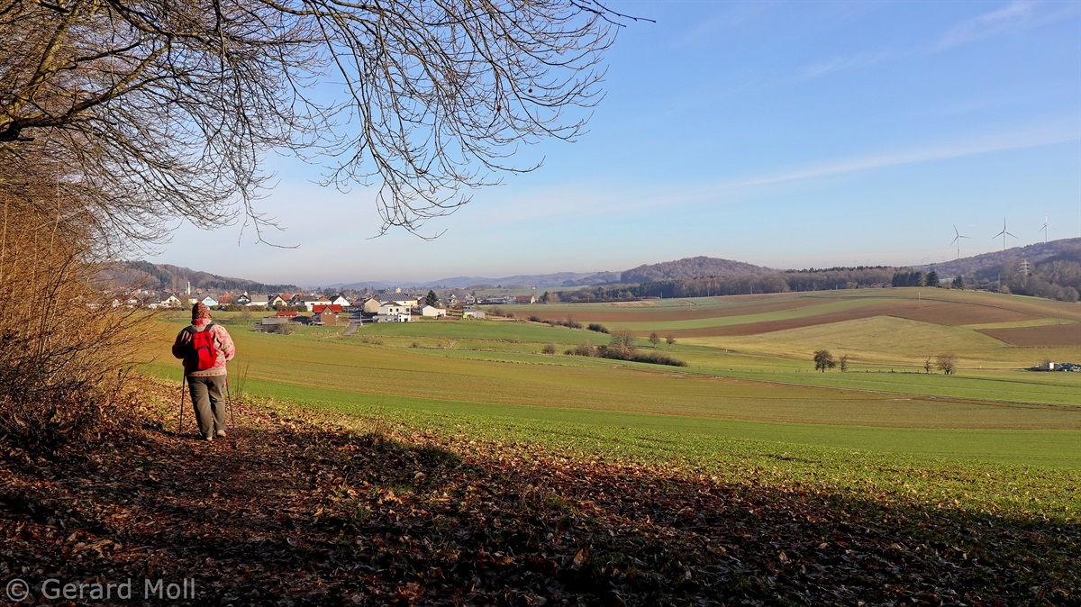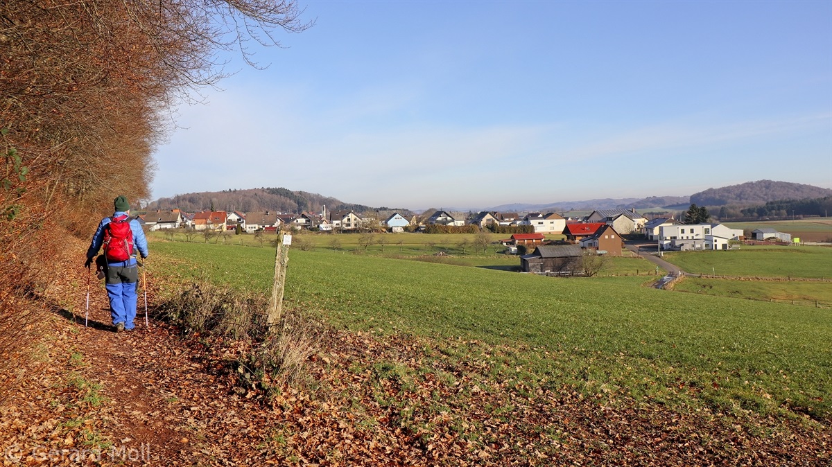 Vom Hofgut Imsbach Lapointe führt der gut angelegte Weg bis nach Selbach. Ein besonderer Anblick war dabei das seltene Haareis. Durch Wälder und über Felder erreichen wir die Johann-Adams-Mühle. Von hier gehen wir an einem Teich mit schöner Spiegelung vorbei zurück zum Hofgut, von wo wir noch einen kleinen Abstecher zur Kapelle des Hofguts machen.