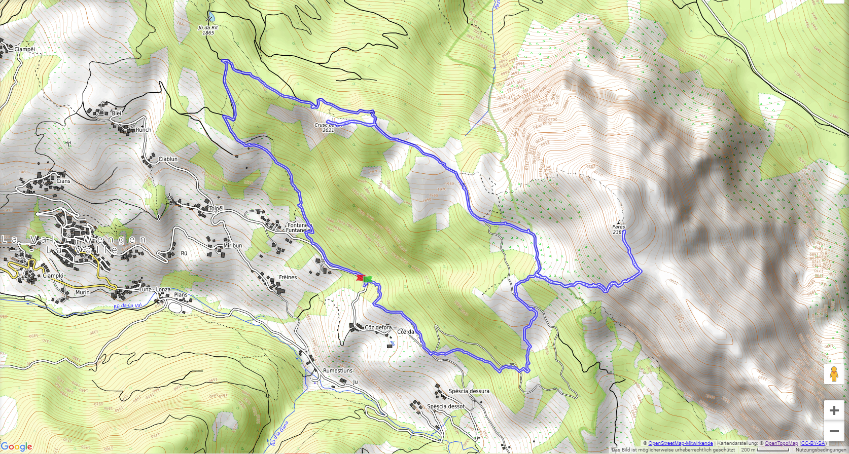 Vom Parkplatz (1578 m) bei Coltz im Wengener Tal führt der Weg steil hinauf zum Gipfel des Paresbergs (2396 m). Der Abstieg führt uns mit einer grossen Schleife über die Kreuzspitze (2021 m) zurück zum Auto.