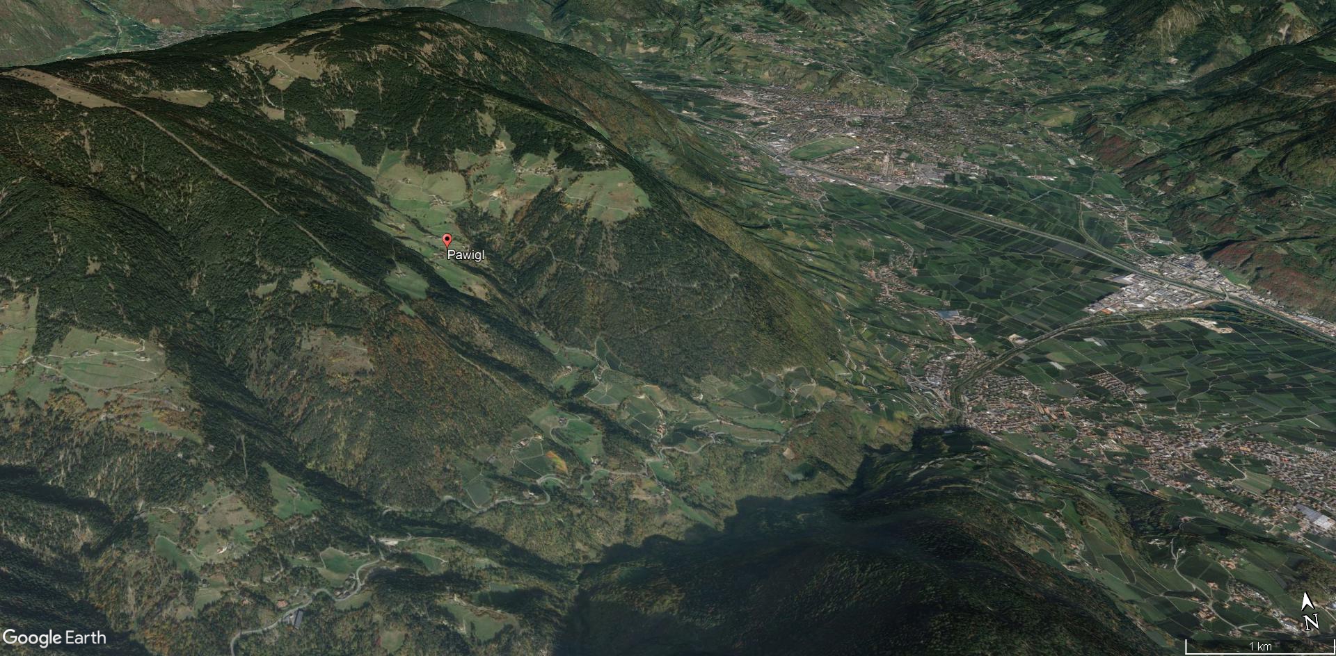 Pawigl liegt südwestlich von Meran am Lärchbühel hoch über dem Ultental.