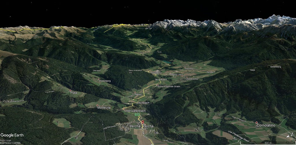 Percha liegt wenige Kilometer östlich von Bruneck im Pustertal.