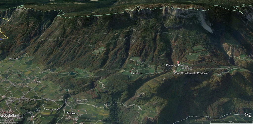 Perdonig liegt am Fuße des Gantkofels hoch über dem Etschtal.