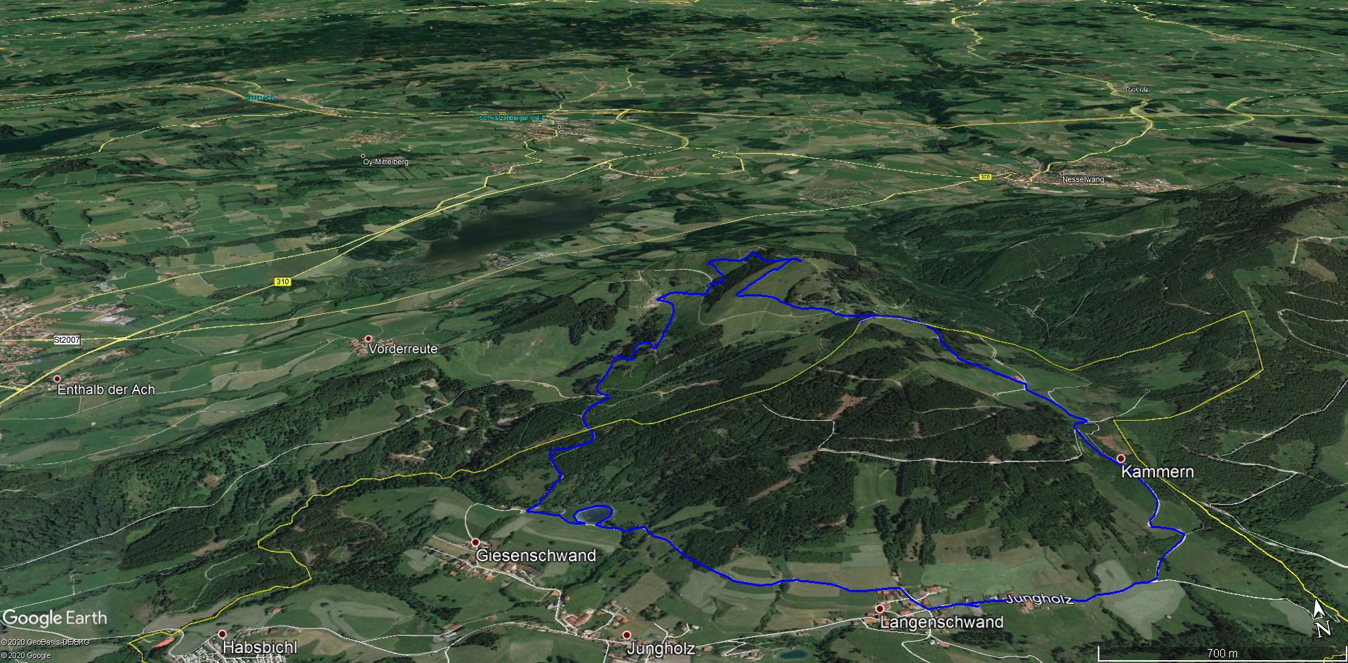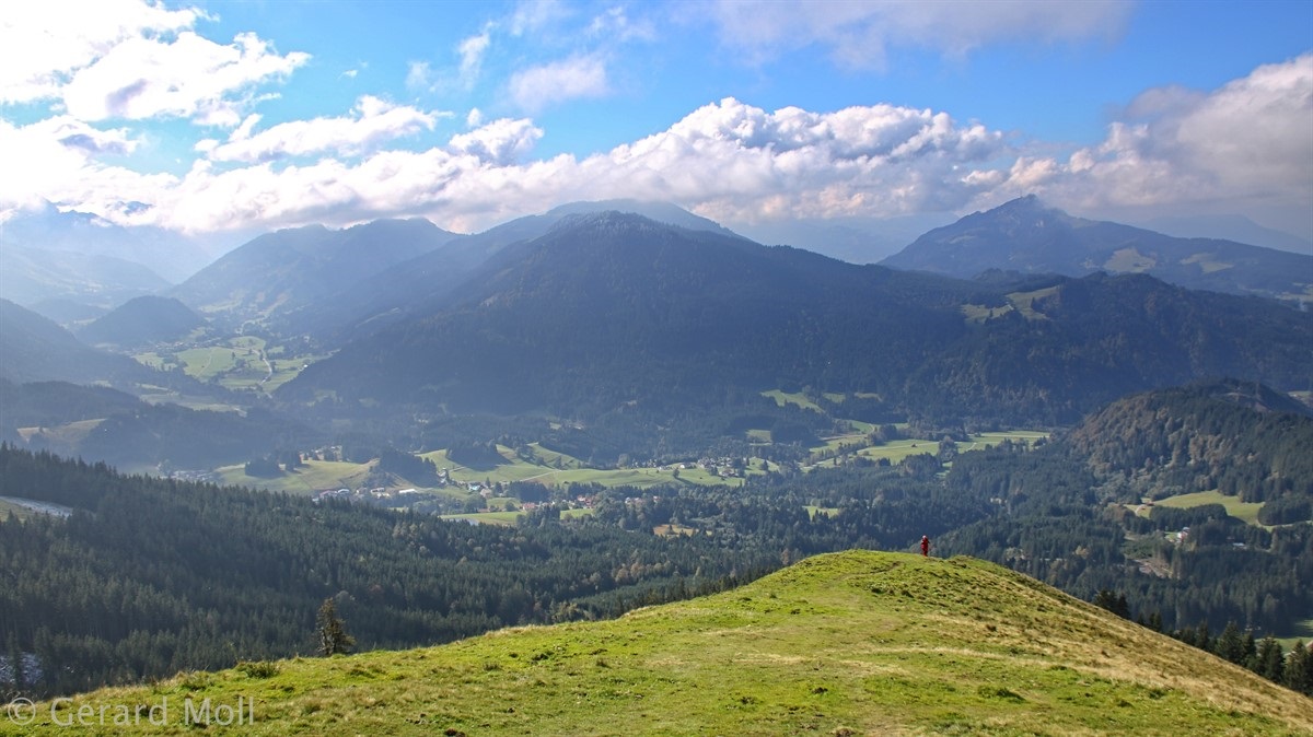 Vom Parkplatz in Jungholz (1058 m) geht es, zuerst auf Fahrweg, hinauf zum unscheinbaren Gipfel des Pfeifferbergs (1457 m). Zur Reuterwanne (1542 m) muss ein steiler Grashang bewältigt werden. Der Abstieg nach Jungholz führt an einem Moorweiher vorbei.