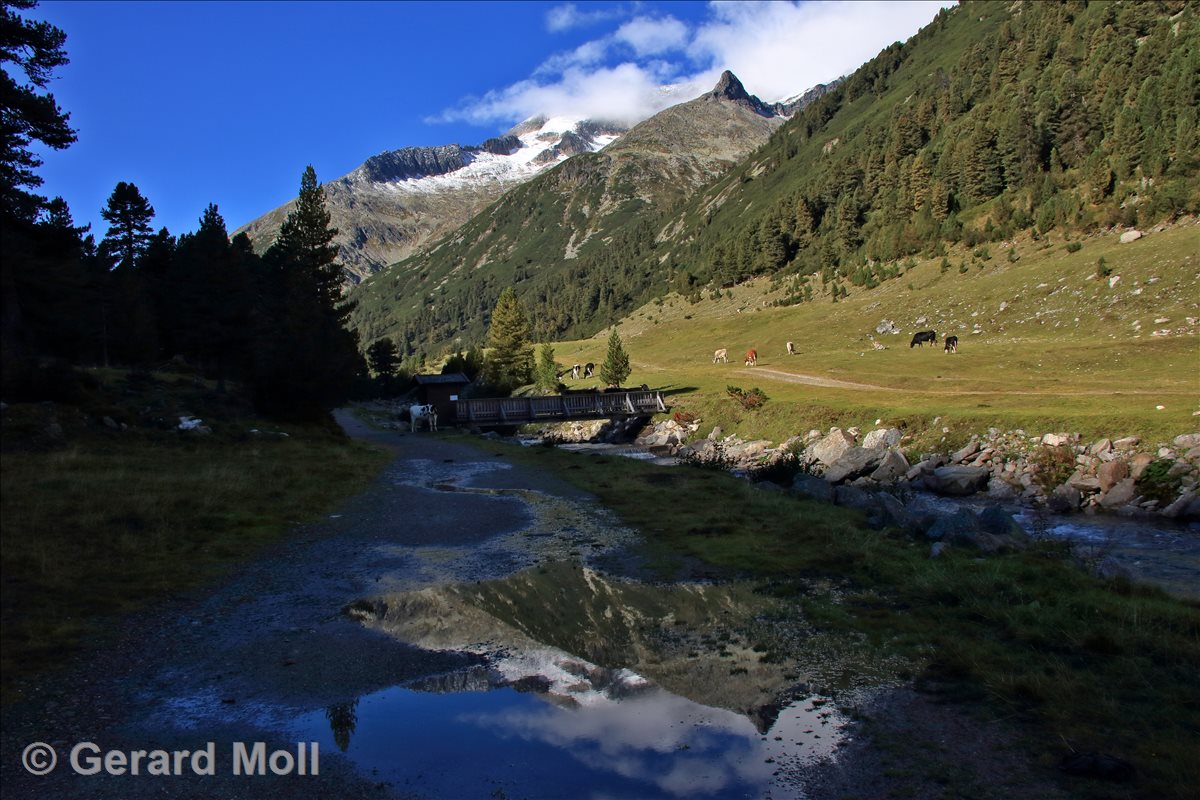 Vom Schlegeisspeicher (etwa 1800 m) führt ein guter Weg hinauf zur Grenze nach Südtirol am Pfitscher Joch. Von dort führt ein Bergpfad hinauf auf den aussichtsreichen Gipfel der Rotbachlspitze (2895 m).