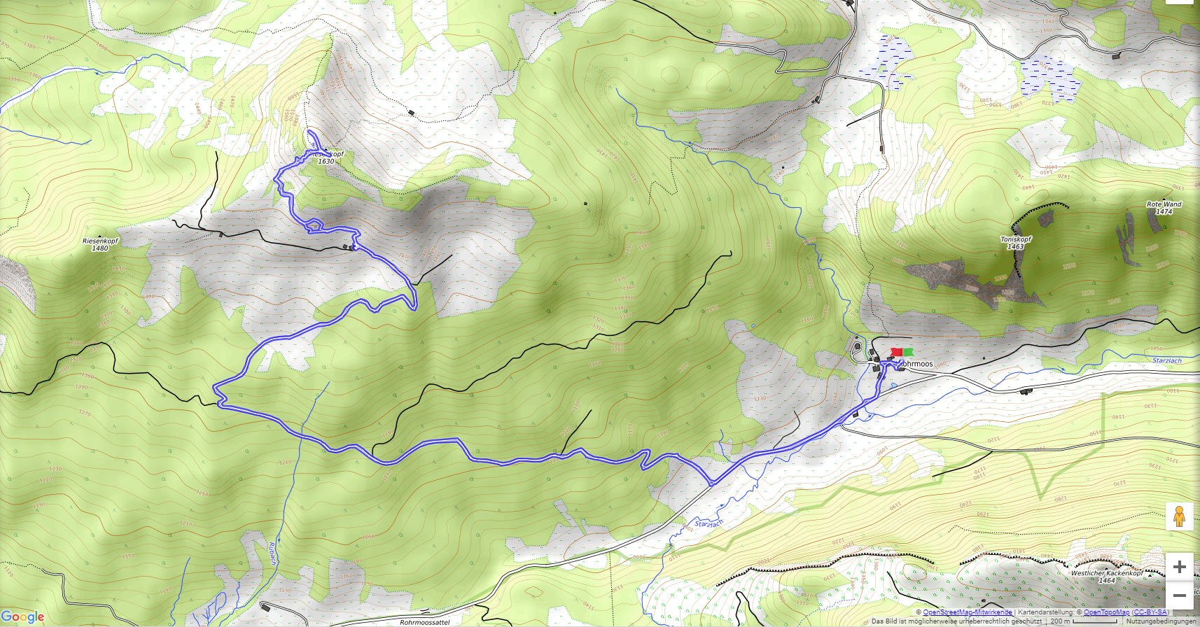 An einem Tag im Spätherbst wandern wir von Rohrmoos (1070 m) unweit von Oberstdorf im Rohrmooser Tal auf einem Fahrweg bis zur Neuen Piesenalpe (1455 m). Danach geht es noch einmal etwa 170 m hinauf und wir stehen auf dem Piesenkopf (1630 m). Der Abstieg erfolgt auf dem Anstiegsweg. In Rohrmoos lohnt sich eine Besichtigung der kleinen Kirche !