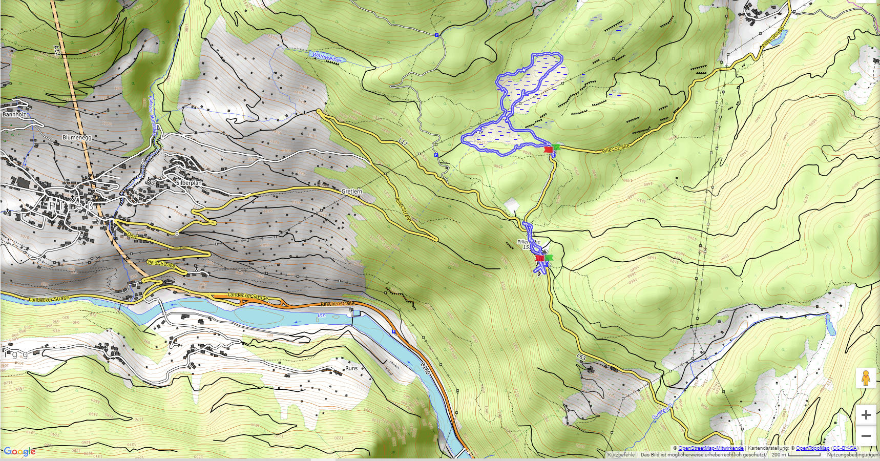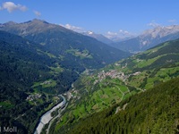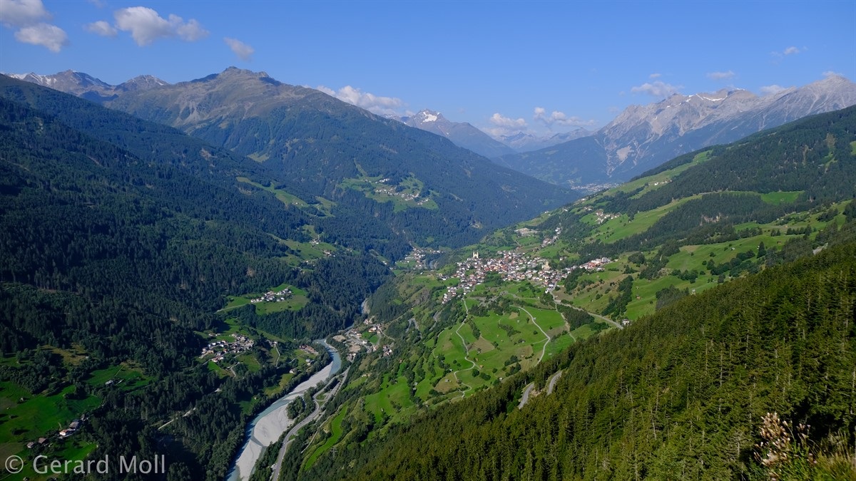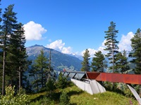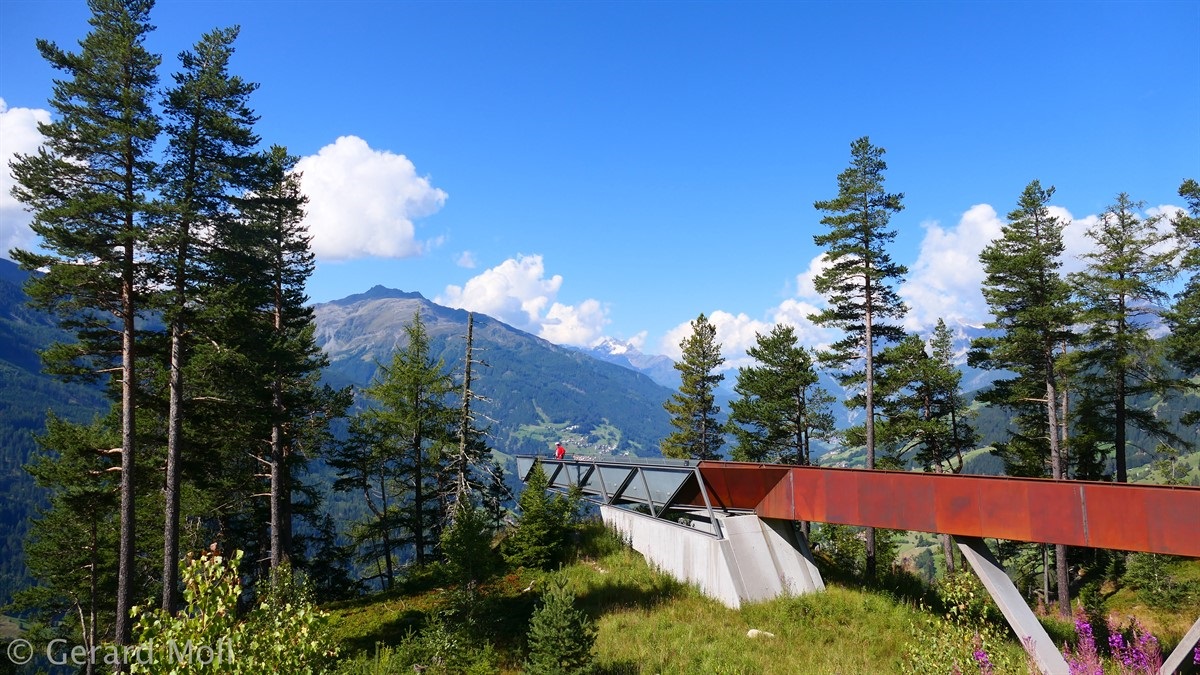 Anschließend parken wir beim Naturparkhaus Kaunergrat am Gachen Blick. Von der Aussichtsplattform bietet sich eine herrliche Aussicht auf das Inntal und die umliegende Bergwelt mit Hohem Riffler und Parseierspitze. Ganz in der Nähe befand sich schon in der Bronzezeit ein Brandopferplatz.