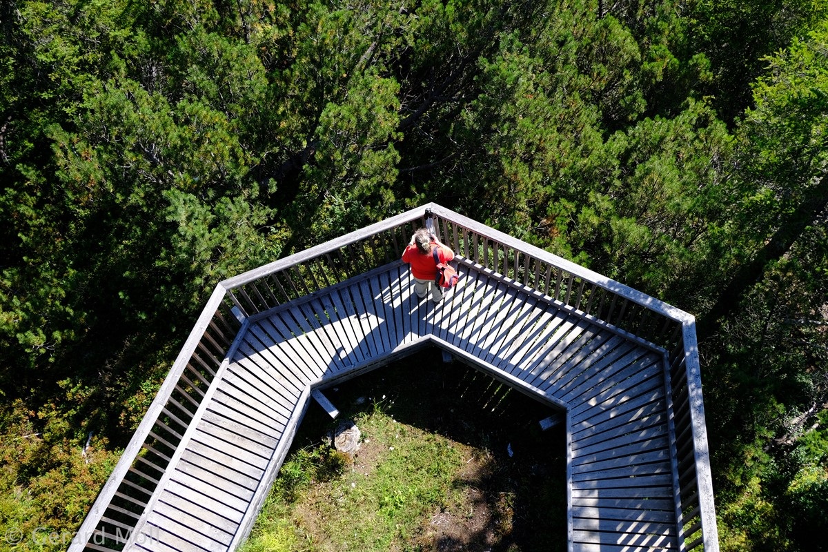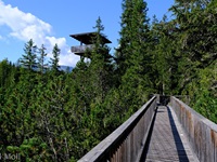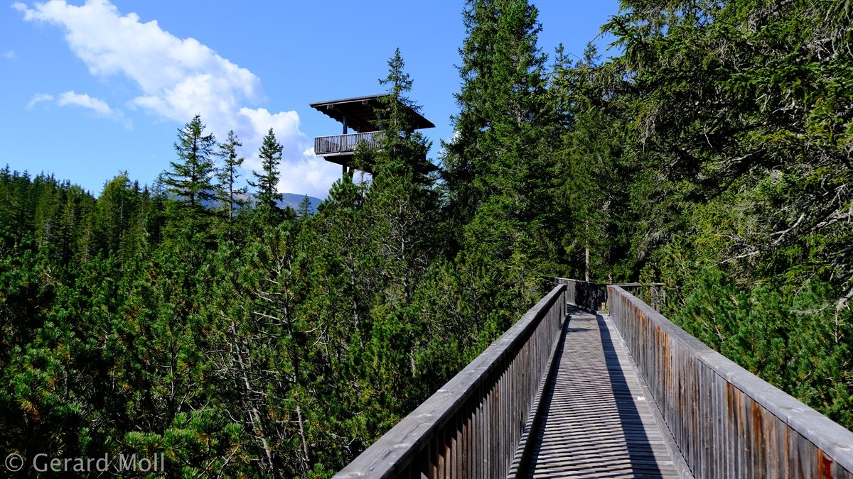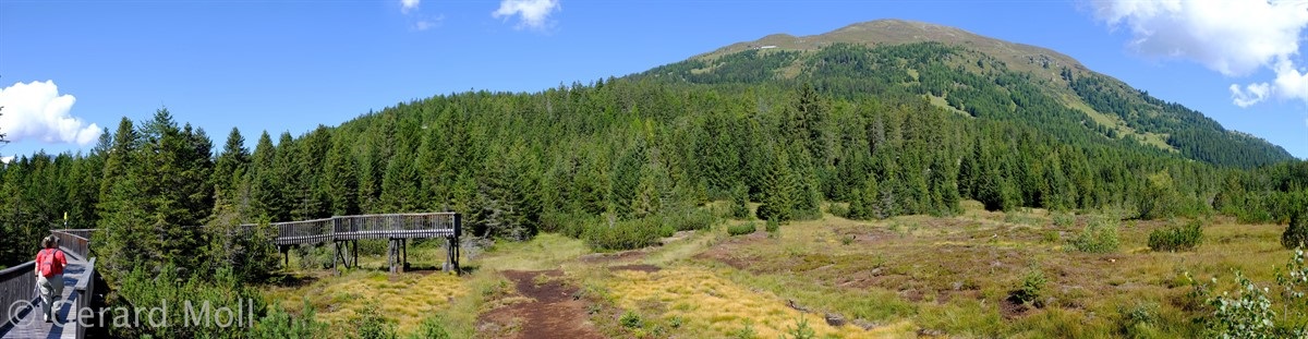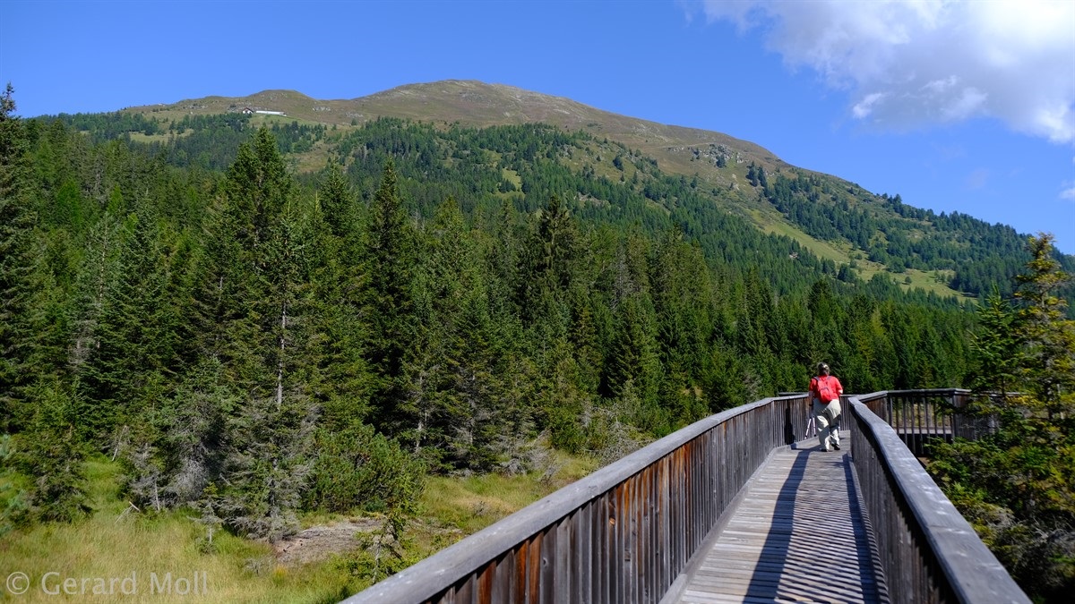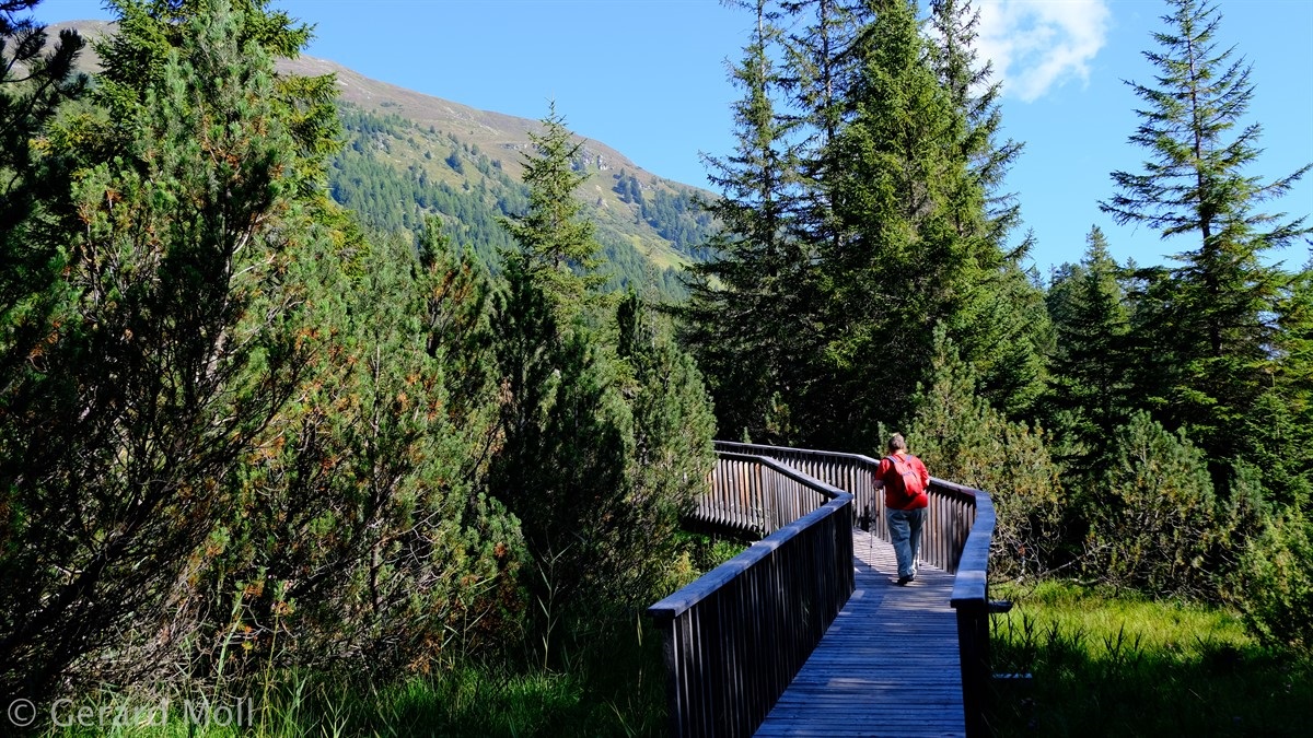 Vom Parkplatz an der Piller Höhe wandern wir auf hervorragend angelegten Wegen über lange Holzstege durch das auf über 1500 m gelegene Piller Moor. Das Hochmoor wurde lange Zeit als Torfabbaugebiet genutzt. Ein Aussichtsturm schenkt uns einen guten Überblick über das Gelände.