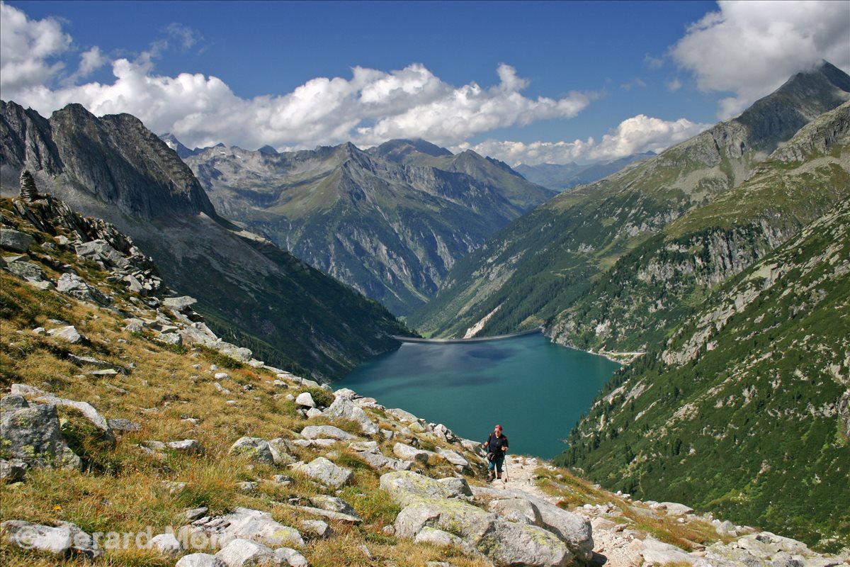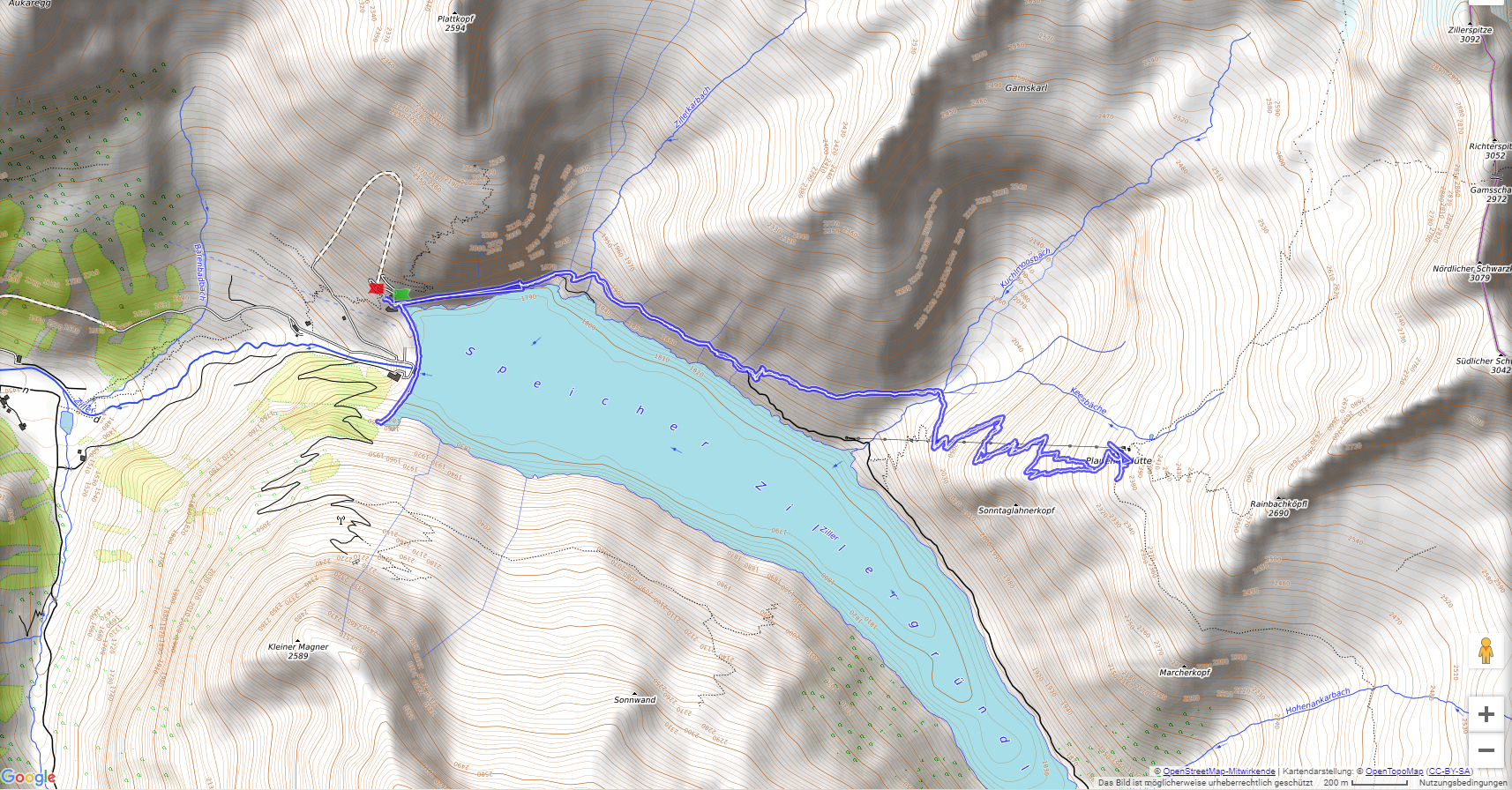 Im Zillergrund fährt ein Shuttlebus zum Speicher Zillergründl (1855 m) Zuerst am Stausee vorbei, dann steiler führt der Weg zur Plauener Hütte (2364 m) unter der Reichenspitze.
