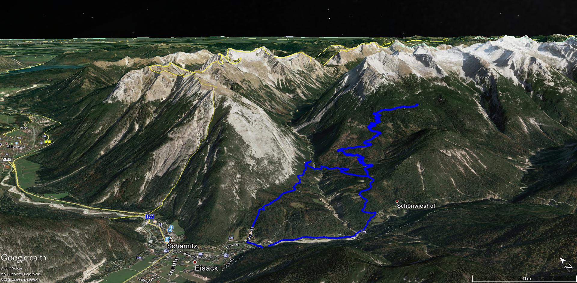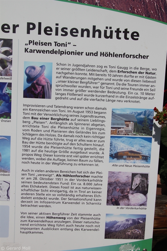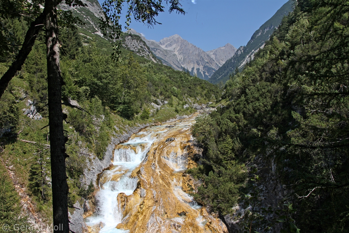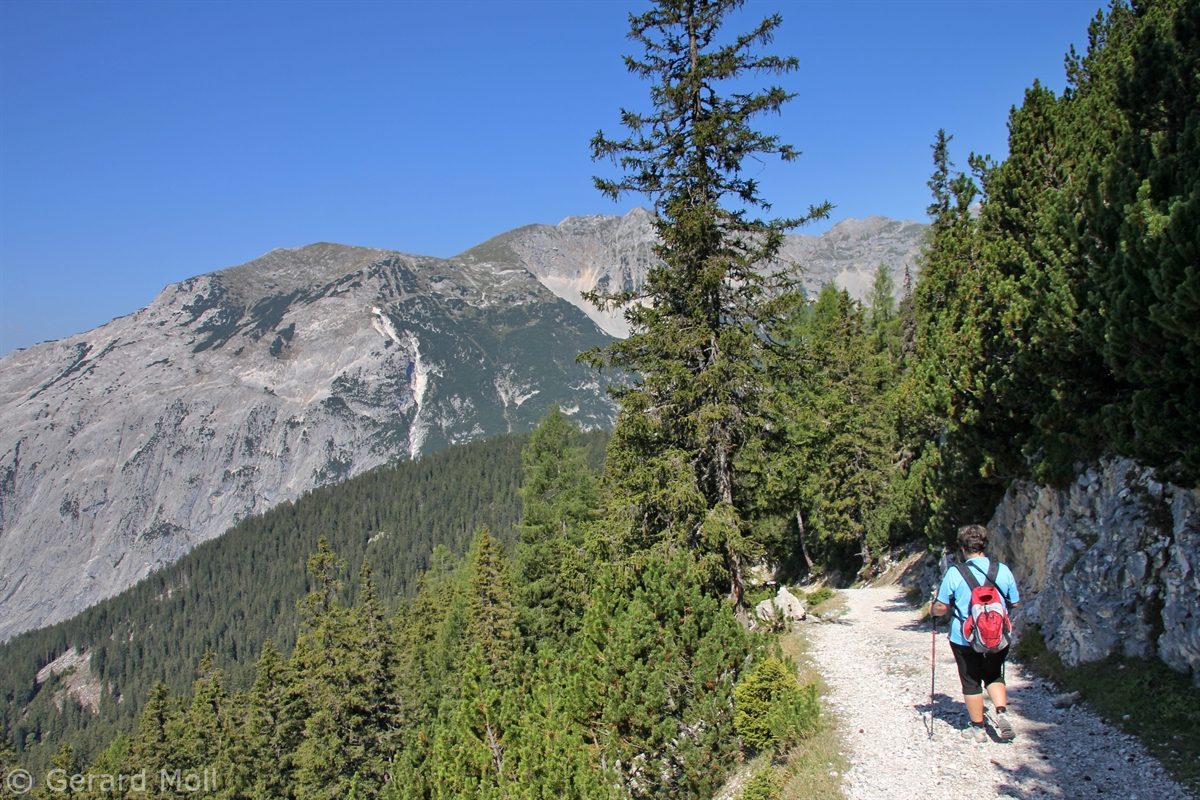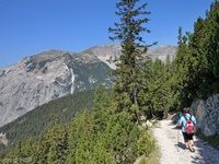 Schöner Weg von Scharnitz (964 m) auf die vom Pleisentoni auf 1757 m erbaute Hütte. Der Rückweg führt uns über den Karwendelsteg mit sehenswertem Wasserfall, vorbei an der Birzelkapelle wieder hinunter nach Scharnitz.