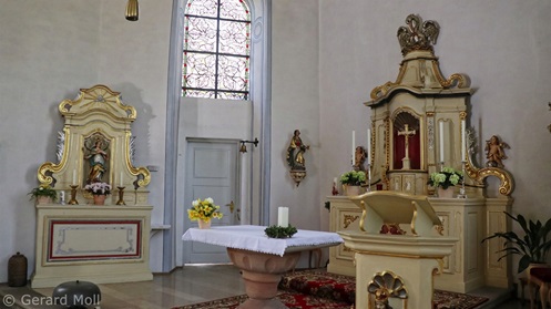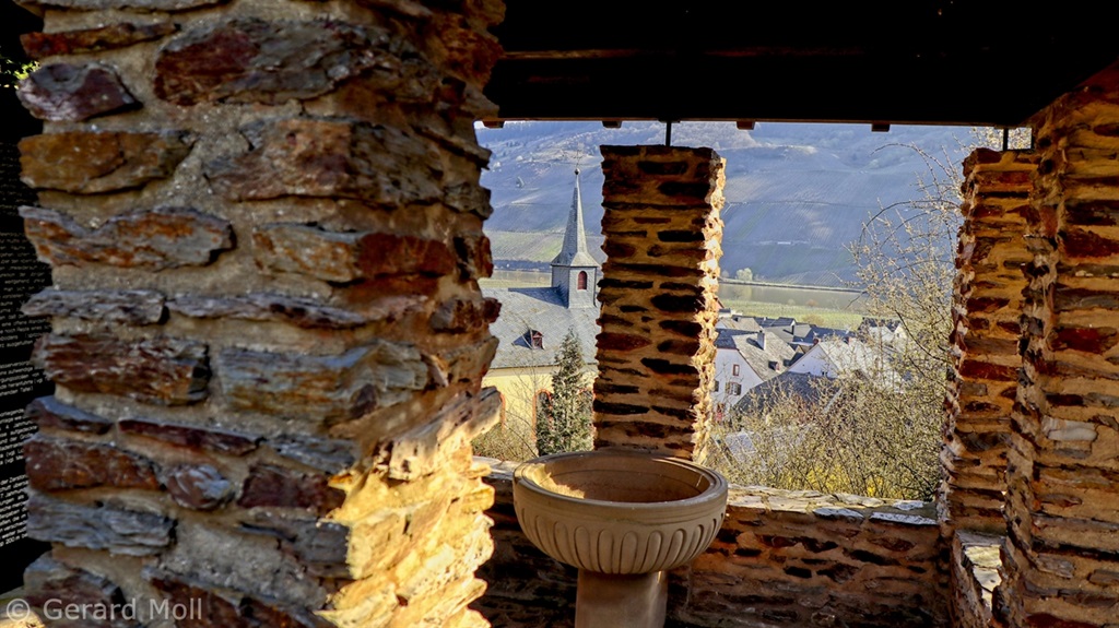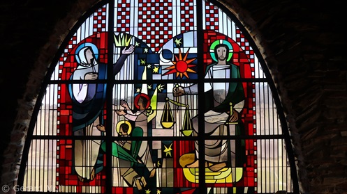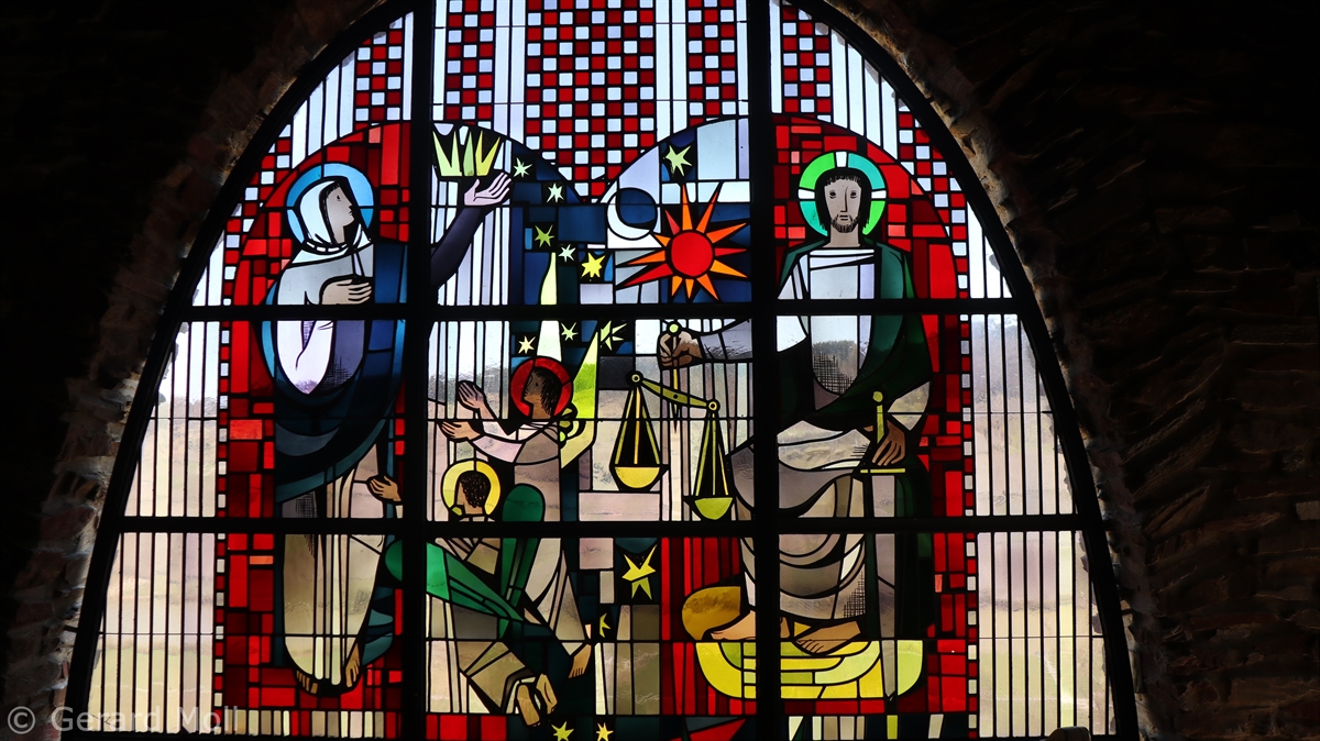 Bild in Lightbox öffnen (open image in lightbox). Glasfenster der Kapelle oberhalb von Pölich.