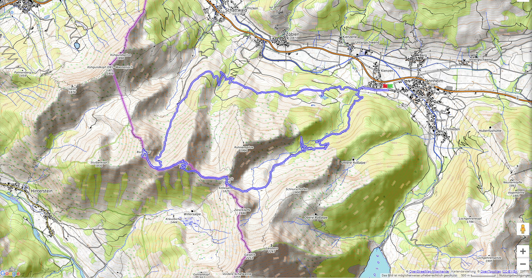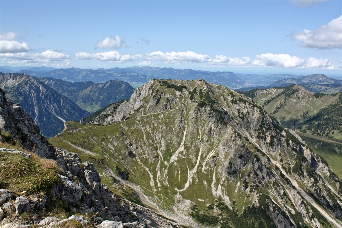 Von Tannheim führt der Weg über das Älpele zum Zirleseck (1872 m). Der steile und felsige Weg bringt uns auf den schmalen Gipfel des Ponten (2045 m). Der Bschiesser (1998 m) ist dann der letzte Gipfel, ehe der Weg über die Stuiben-Sennalpe wieder zurück nach Tannheim führt.